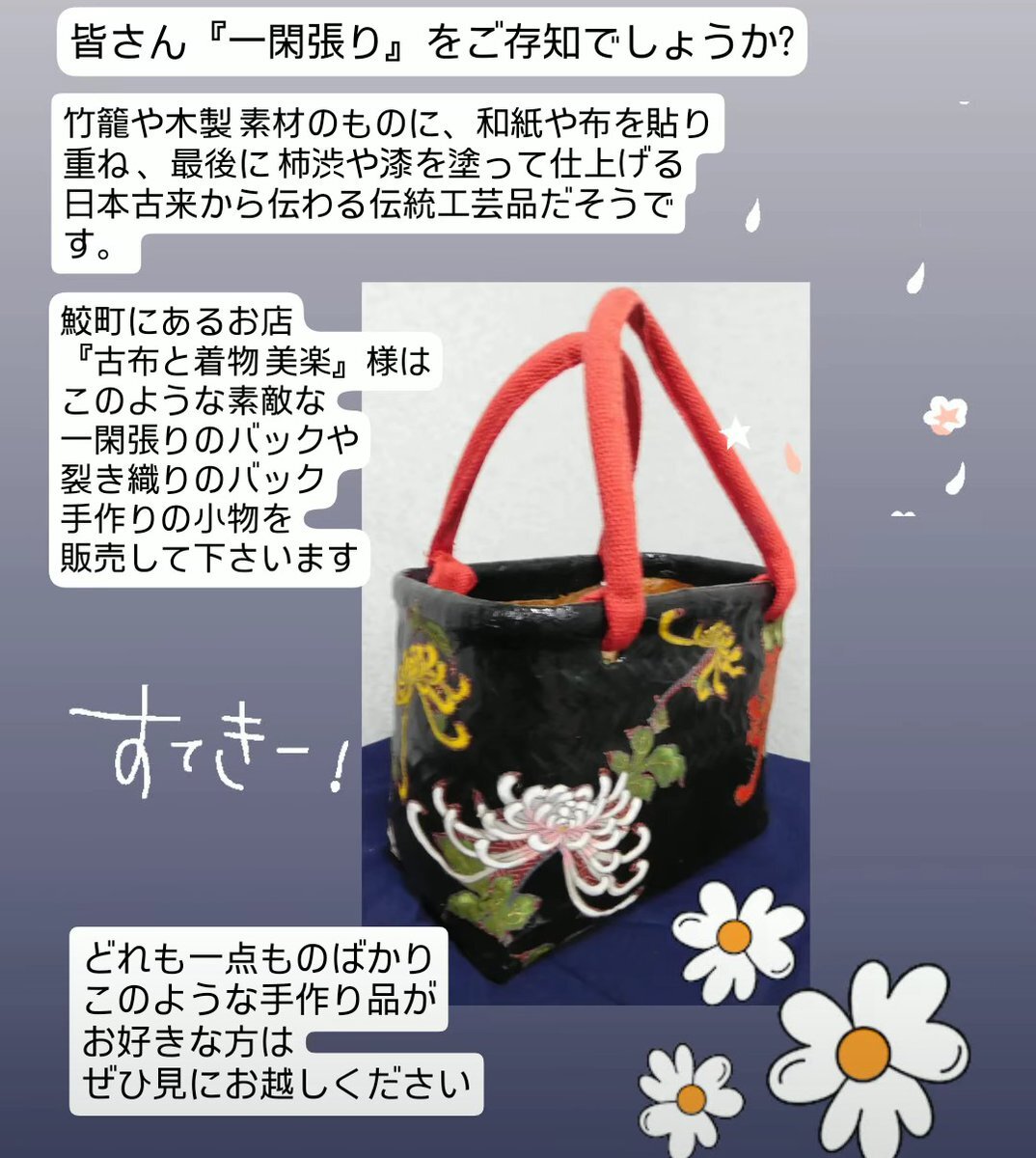 📢11月23日(日)鮫🦈フリーマーケット出店様のご紹介〜一閑張りや裂き織りのバックと小物、着物や帯の生地を使った手作りの小物入れなど、どれも一点物の素敵なものばかり✨鮫町、古布と着物「美楽」様出店です😊和雑貨や伝統工芸品がお好きな方はぜひ見にお越し下さい😊#蕪島 #鮫町 #観光振興 #八戸 pic.x.com/AUgnZ3ardB