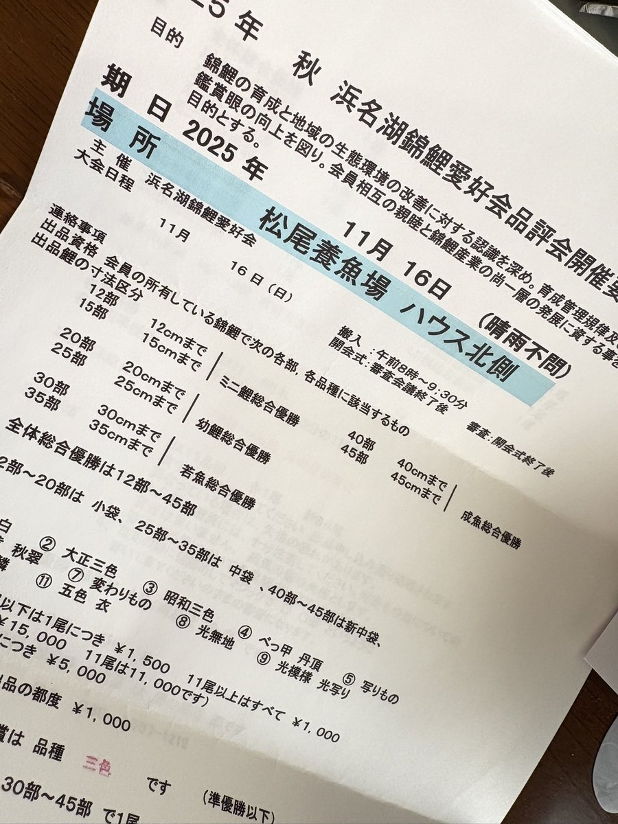 本日の品評会の結果は12本出品して優勝8本準優勝2本ドボン2本でした〰️😅でもやっぱり優勝止まり😇中々養魚場には敵わないですね〰️🥹 優勝準優勝の景品の金券の合計で松尾養魚場さん出品の15部光り模様の優勝魚1万円相当の麒麟頂いて来た😎 #錦鯉 #品評会 #観賞魚 #浜名湖錦鯉愛好会品評会 pic.x.com/lTa7NarL2p