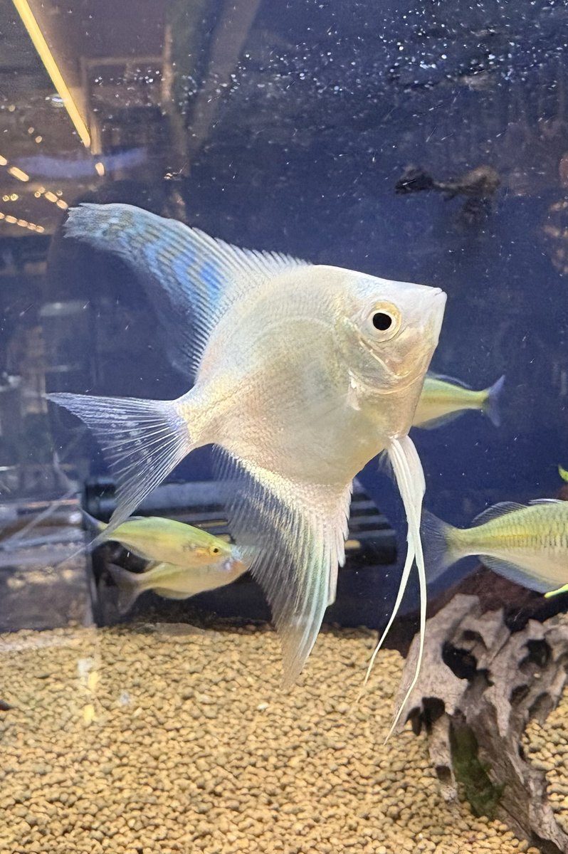 【プラチナホワイトベールテールエンゼル】 1匹でも存在感があるエンゼルです🎶各ヒレが少し長いのも特徴的です お問い合わせ ペッツワン佐倉店 TEL:043-483-1222 #熱帯魚 #アクアリウム #観賞魚 #エンゼルフィッシュ #初心者歓迎 #佐倉市 pic.x.com/HAyZF47F2v