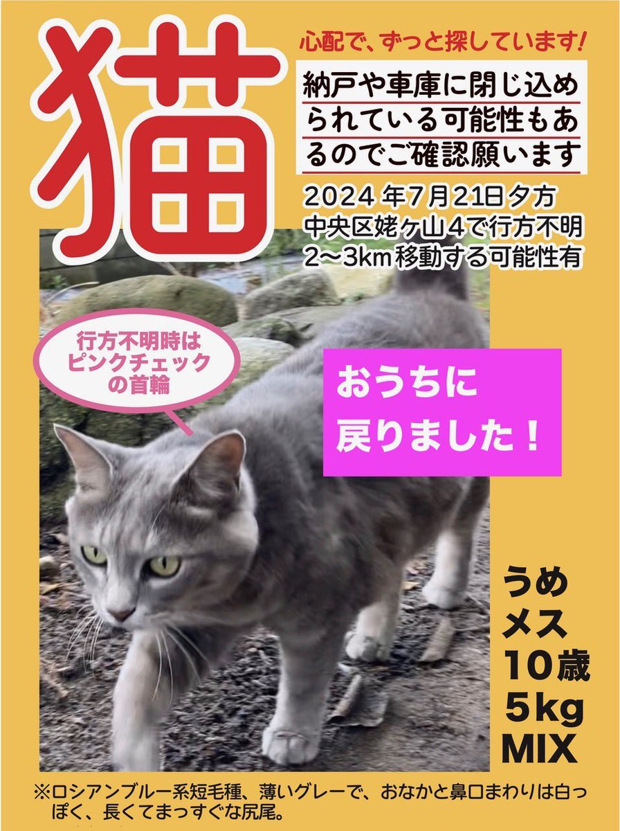 うめちゃんが1年4か月ぶりにおうちに戻りました! #梅ちゃん #解決 #猫 x.com/ndn_niigata/st…