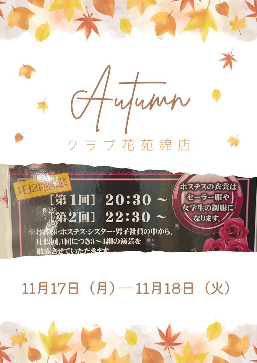 クラブ花苑錦店です♩ 今月はイベント盛り沢山です🤲 よろしくお願いします🫡 # # #クラブ #キャバクラ #キャバレー #高収入 #日払い #託児所 #寮完備 #20代30代 pic.x.com/3jEuqlRgks