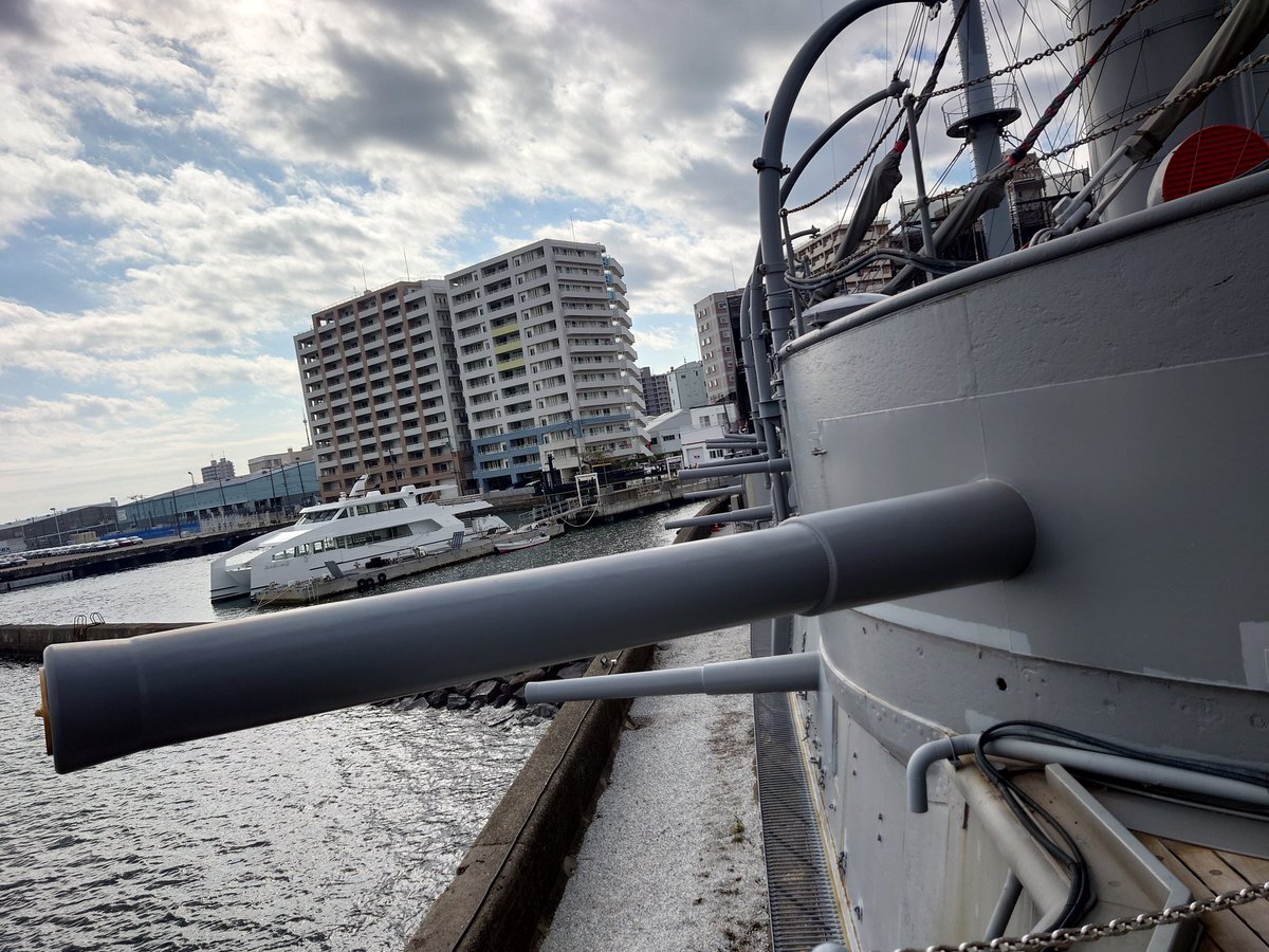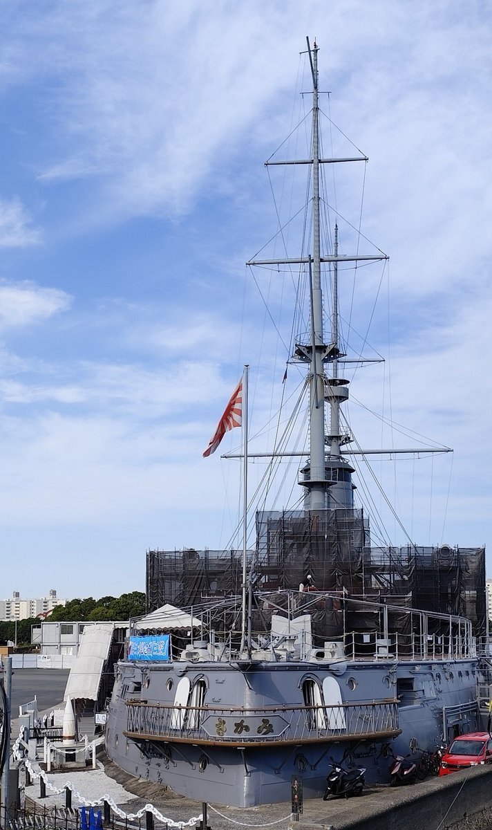 猿島から戻り、戦艦三笠(現在は記念艦)を見学したYO😼 120年前の日本海海戦の連合艦隊旗艦はやはり立派な艦艇ですね😼 東郷司令長官も眺めた三笠の最上艦橋から望む前部主砲はデカい😽 板貼りのデッキが味がってよき😻 只今、一部修補で塗装中でした😿 @KinenkanMikasa #記念艦三笠 #横須賀 pic.x.com/YZmWwuFcMu