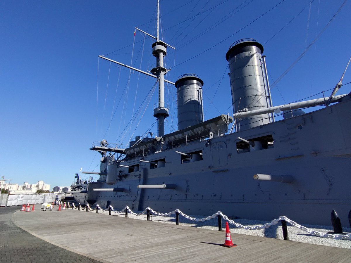 猿島へ渡る前に駆け足で三笠を見学してきました😂当時としては十分デカい艦だったでしょうね😳 平日だと下の公園で保育園の子供達が遊んでたりして、今日も歓声が聞こえてました。 そういうのを不釣り合いって言う人がいるけど、そうじゃねぇんだよなぁ… この子達を守るためなんだよ… #記念艦三笠 pic.x.com/LT6dHvW4tc