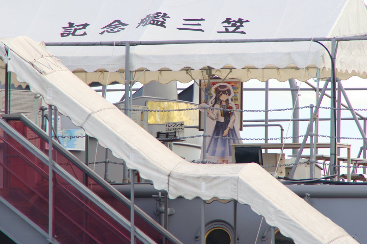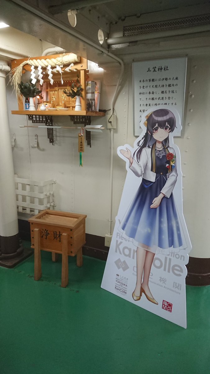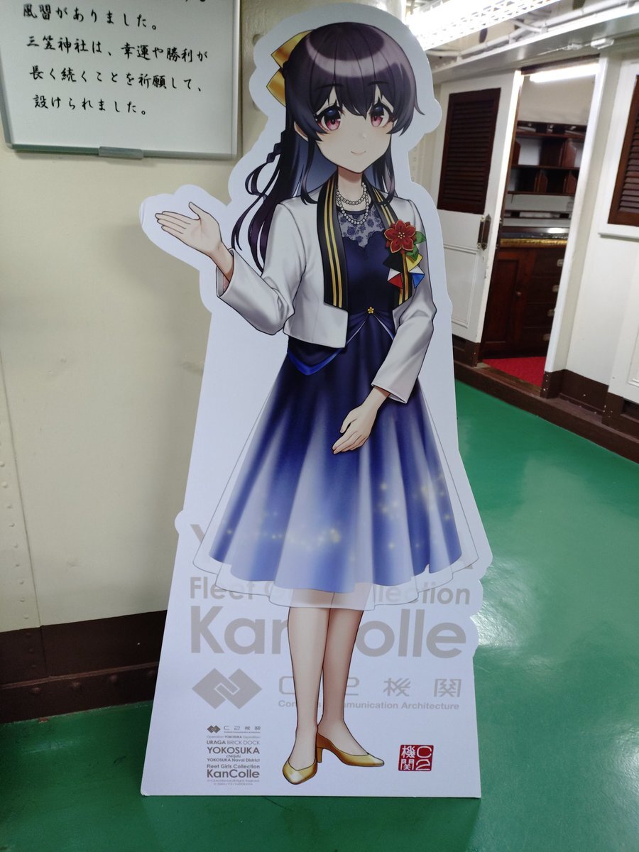艦これとコラボ中の横須賀で、記念艦三笠を見学してきました 入口付近に艦これのスタンディパネルがあったのですが、艦娘としての三笠なのでしょうか?(ゲーム内実装もありえる??) #記念艦三笠 #艦これ pic.x.com/O0fYKKc7WF
