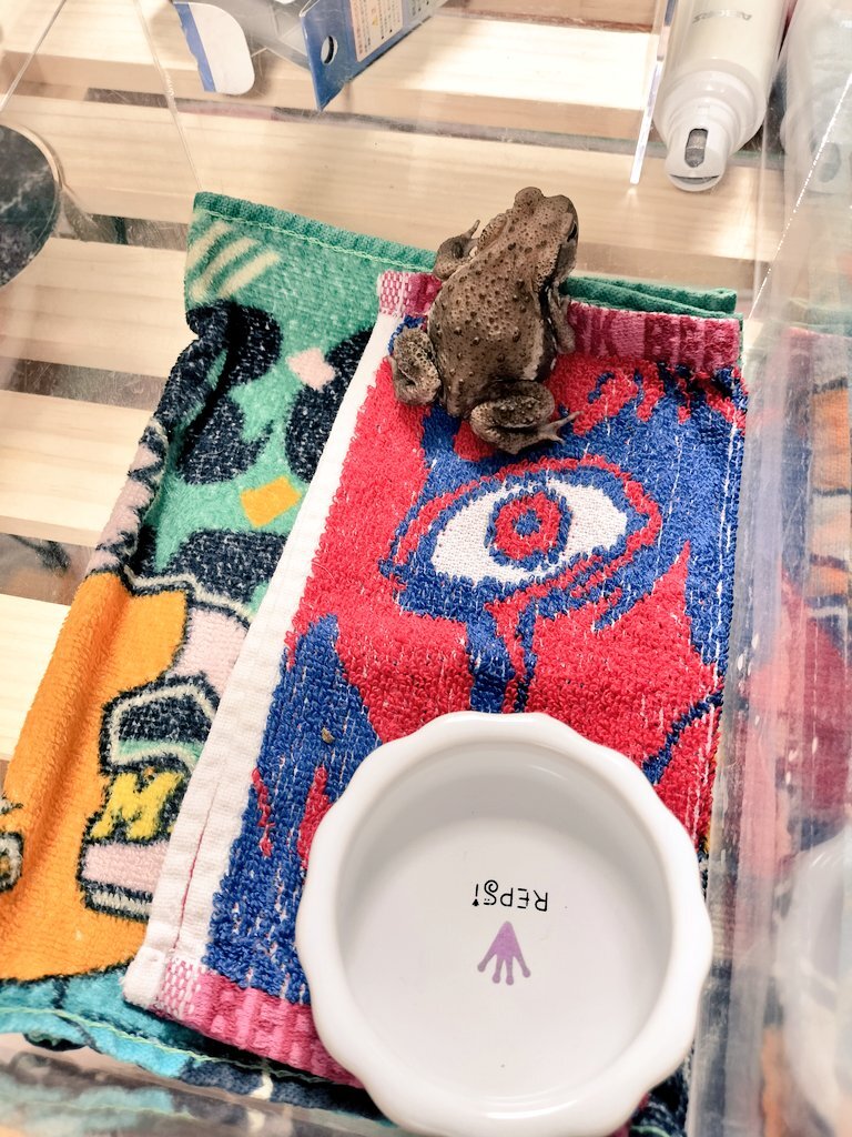 子がえる全31匹中1匹だけ絶対人工飼料食べないマン、日中は同じ池の子達と一緒に入れて集団生活に慣れさせてるんだけど、明らかに小さい🥹 人工飼料食べないと成長速度遅いんだよねぇ…元気ならいいんだけどね😌 #2025子育て #記録用