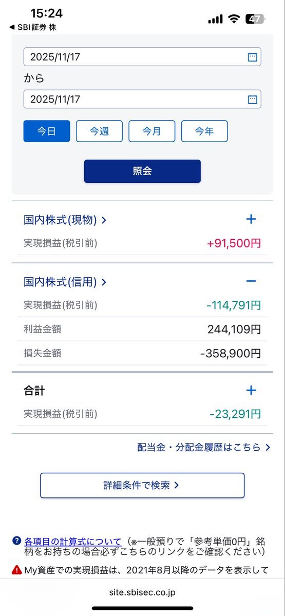 本日、11/17デイトレ 引け乙です 今日は朝一から先週持越分のキオクシア損切り358,900円😭 必死に挽回したけどここまで〜😵‍💫 取引銘柄  ・フジクラ  ・キオクシア #デイトレ #記録用 #投資家さんと繋がりたい pic.x.com/QrTlj98GqY