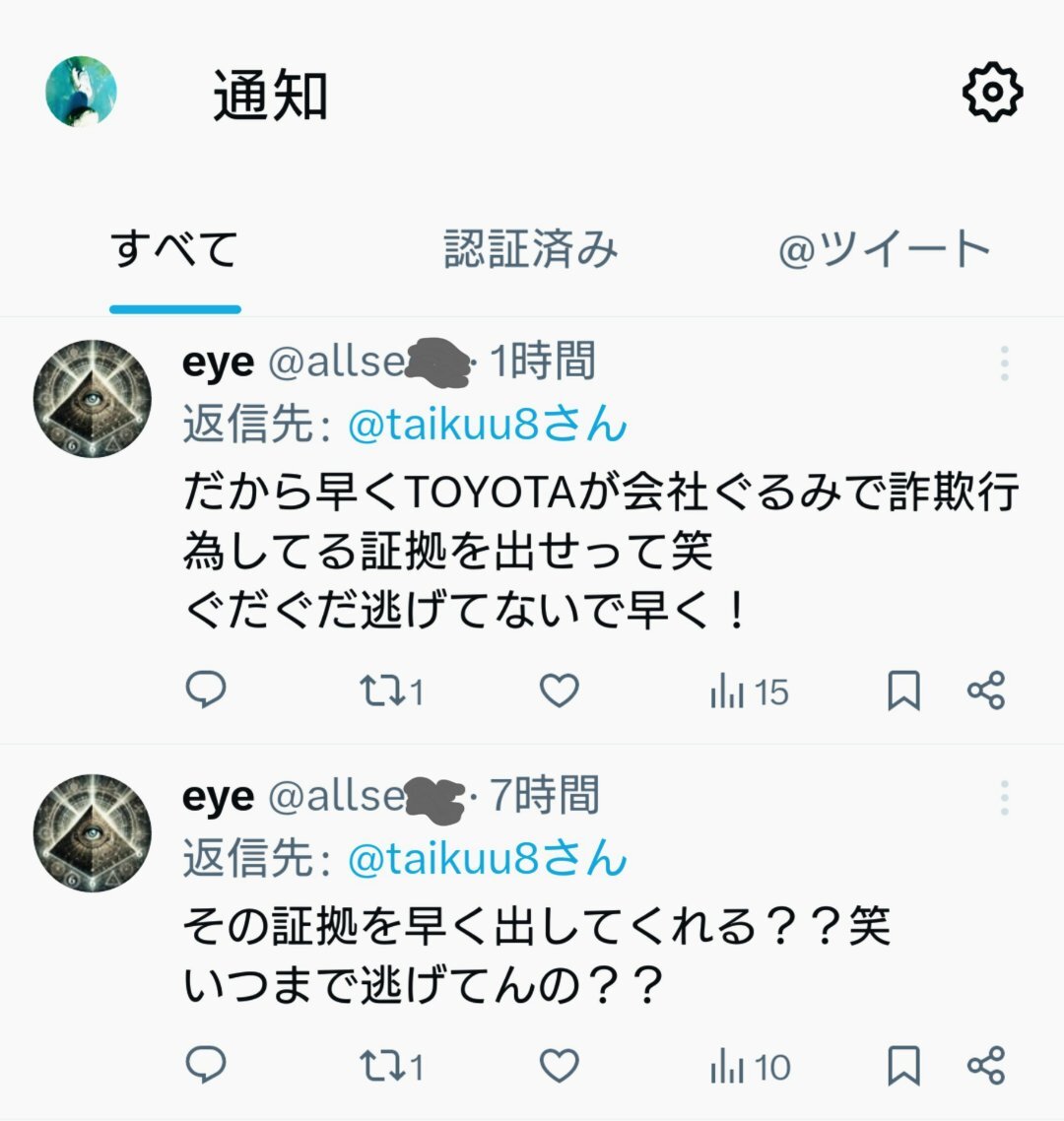 📢11月18日📢 結果、私は まだ、無事ですよ~🎵 ✨#458日 ✨経過 ✨㊗️400日以上✨ もう、✨1年以上✨ 経ってるよ❗ 凄くない? 私の情報は、真実だから こんなにも続けられる トヨタ TOYOTA の 業務改善命令や 抱き合わせ販売、 密輸疑惑までも💧 まだまだあるよ❗隠蔽事は💥 ⬇️#証拠 の一部 pic.x.com/6ZOPikjI66 x.com/taikuu8/status…