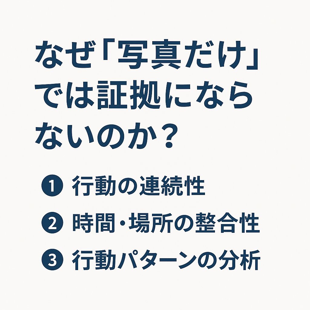 証拠として力を持たせるには次の2点が不可欠です。 • 行動の連続性—写真を時系列でつなぐこと。 • 時間・場所の整合性—写真と移動履歴・日時の一致。 当社はこれらを整理した裁判対応レベルの調査報告書を作成します。まずは匿名でご相談ください(24時間受付)。 #浮気調査 #調査報告書 #探偵 #証拠 pic.x.com/ttc3sUUGQY
