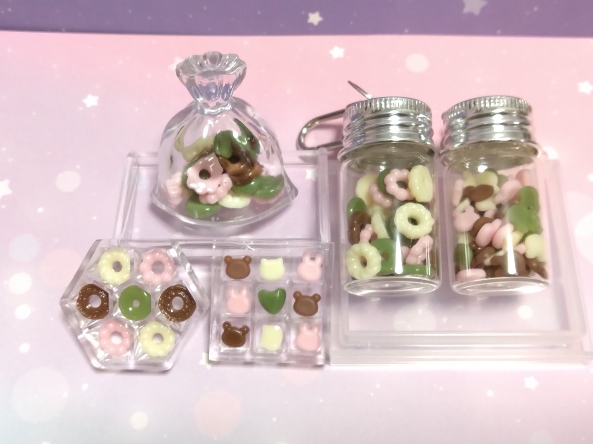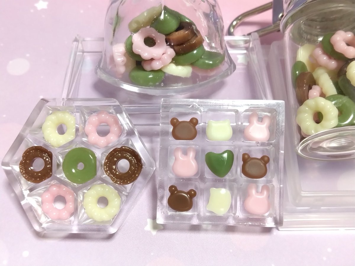 ドーナツ🍩と動物達のミニチョコ🐻😺🐰を入れたくていろんな入れ物を作ってみたけど、どれが1番可愛いか分からなくなった😓💦 この小ささが可愛いから活かしたい‼️ #レジン #試作品 pic.x.com/FfcCU4JZps