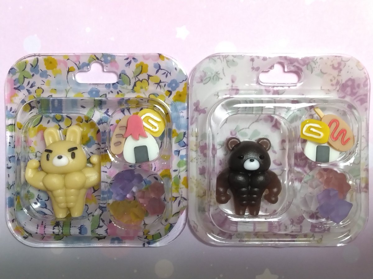 ムキムキくまちゃんとうさぎちゃんのお弁当、パッケージモールドを作りたくて試作品中😊 箱を作ってないからとりあえず柄入りで詰めてみました😊 #パッケージモールド #試作品 pic.x.com/CJiJxkIaY6
