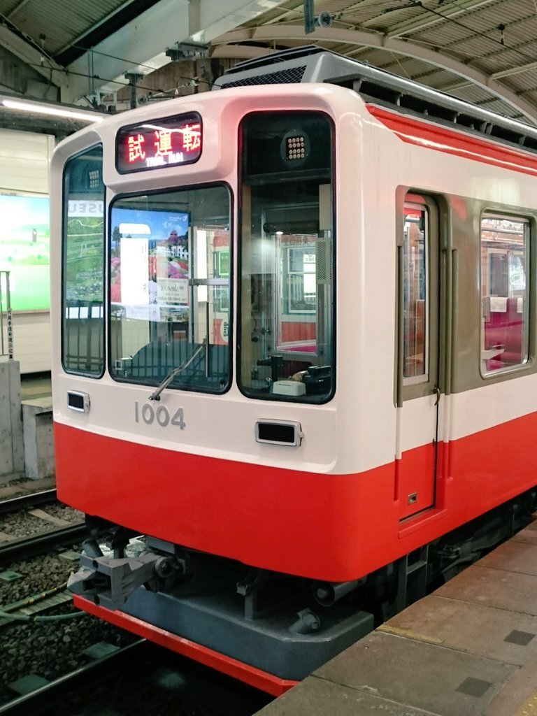 『 #箱根登山電車 の車両たち🚋』 本日は、箱根湯本駅の臨時線に停まっていた [ #ベルニナ号 B2編成]の写真を投稿します。 RPより引き続き、ちょっと珍しい方向幕の写真ですが… 3️⃣枚目は『特に!珍しい!!』 「試運転」幕なのに 開扉している!!状態です。 #箱根登山鉄道 #方向幕 #試運転 #試運転幕 x.com/okuyumoto/stat…