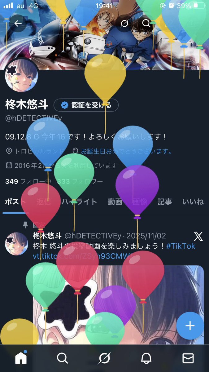 返信先:@cyakami35pあなたの投稿で一番いいねがついたのは、11月8日の「いきなり飛ぶやん!バルーン来た〜! #誕生日」の投稿で、41いいねです! x.com/cyakami35p/sta…