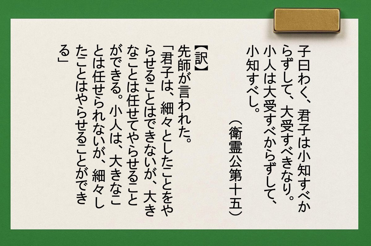 立派な人は、目先の損得や小さな知恵で動くわけではありません。 大切なのは、どれだけ賢いかよりも、どれだけ広い心で受け止められるかです。 ――賢さよりも、器の大きさが人をつくります。 #論語 pic.x.com/rhx8ky455d