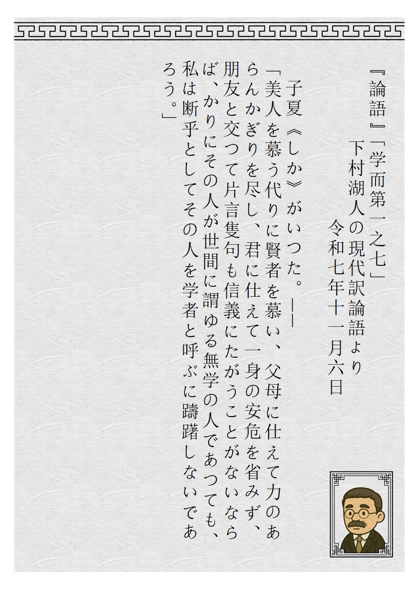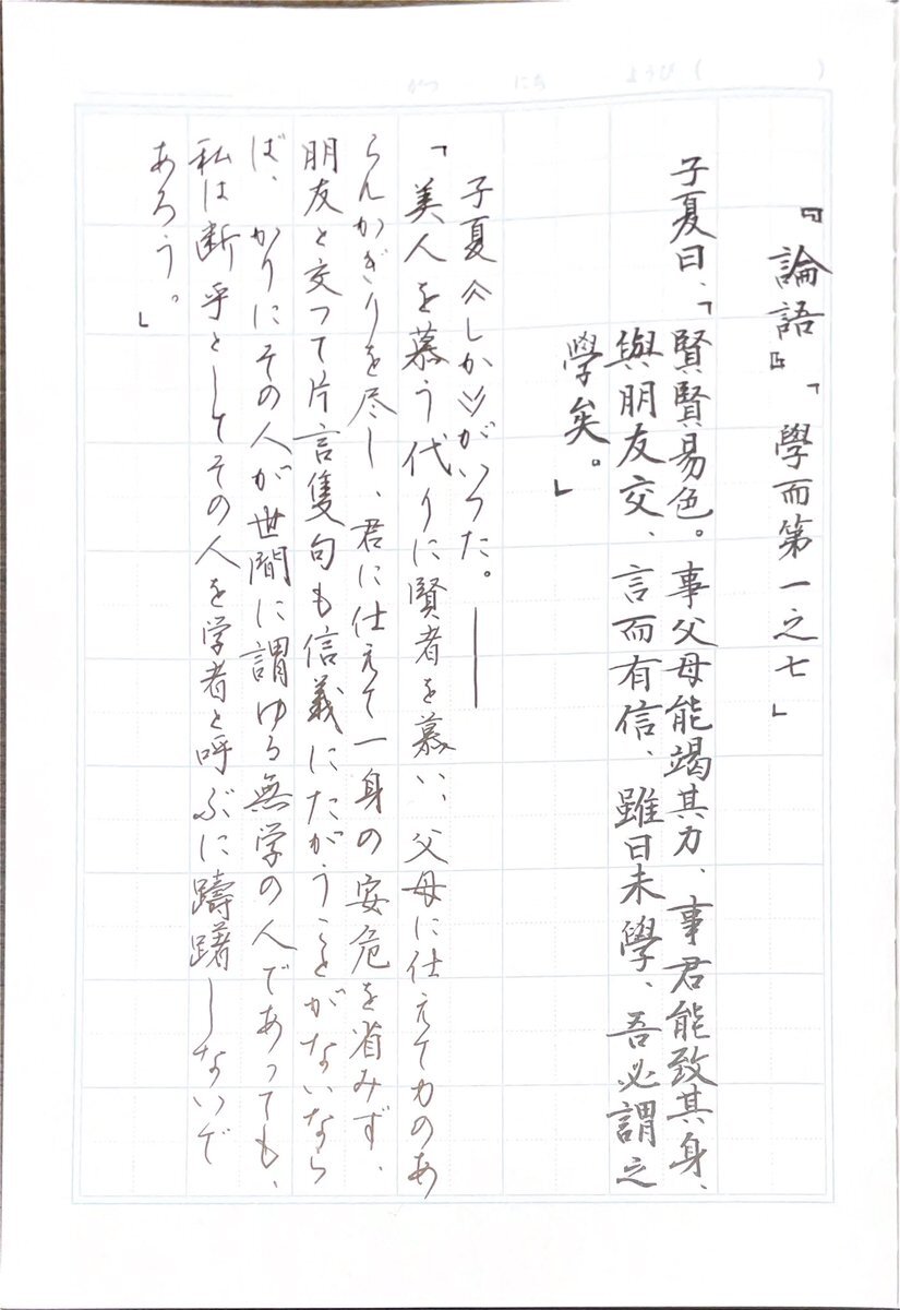 #中国古典一日一話書写 #論語 第五七回 学而第一之七 本日は現代訳です。