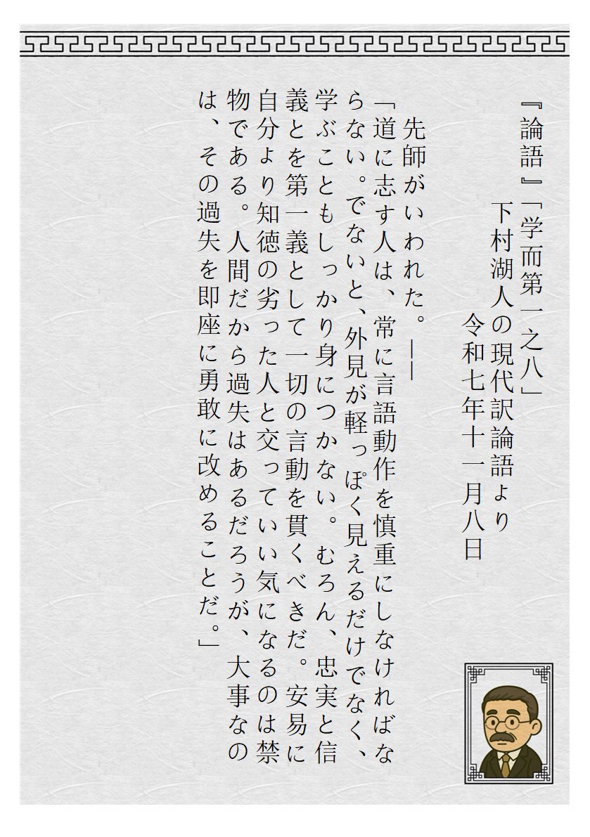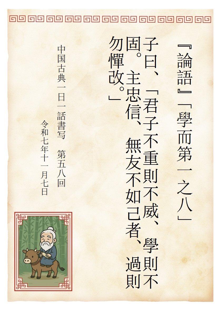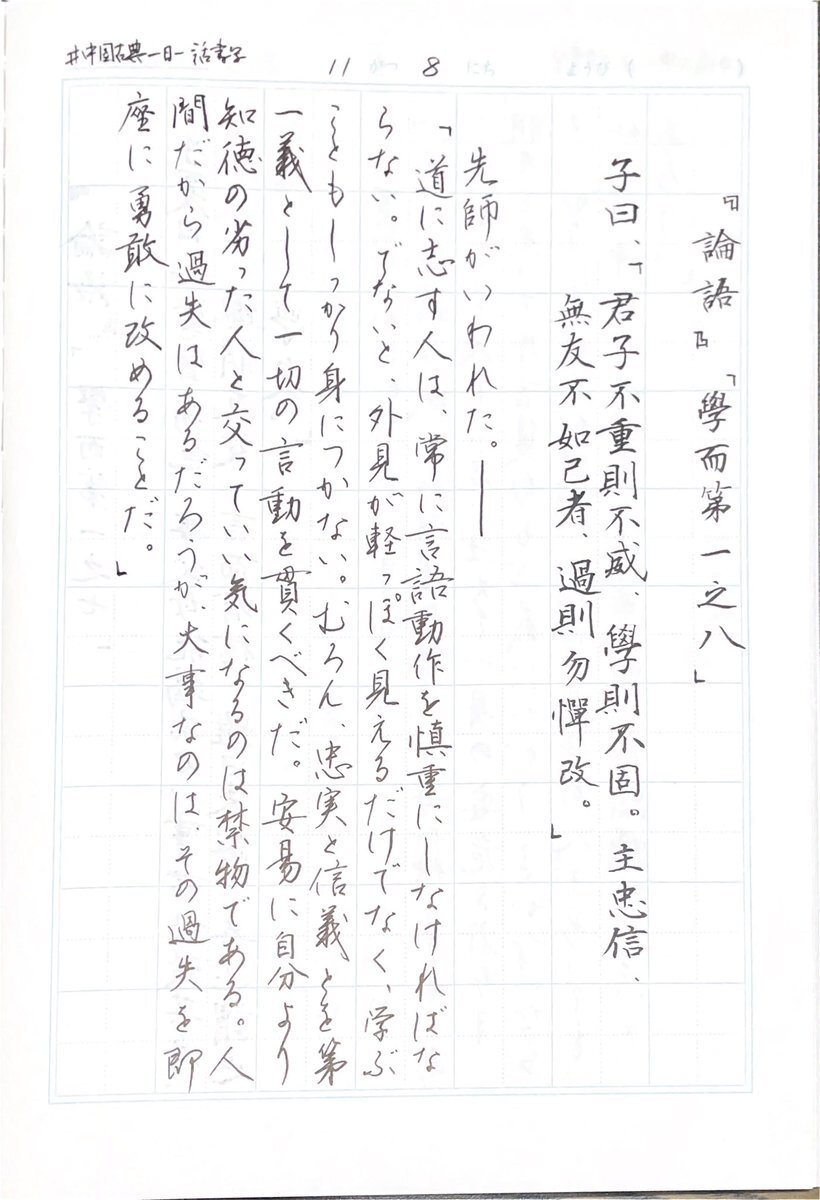 #中国古典一日一話書写 #論語 第五八回 学而第一之八 本日は現代訳です。