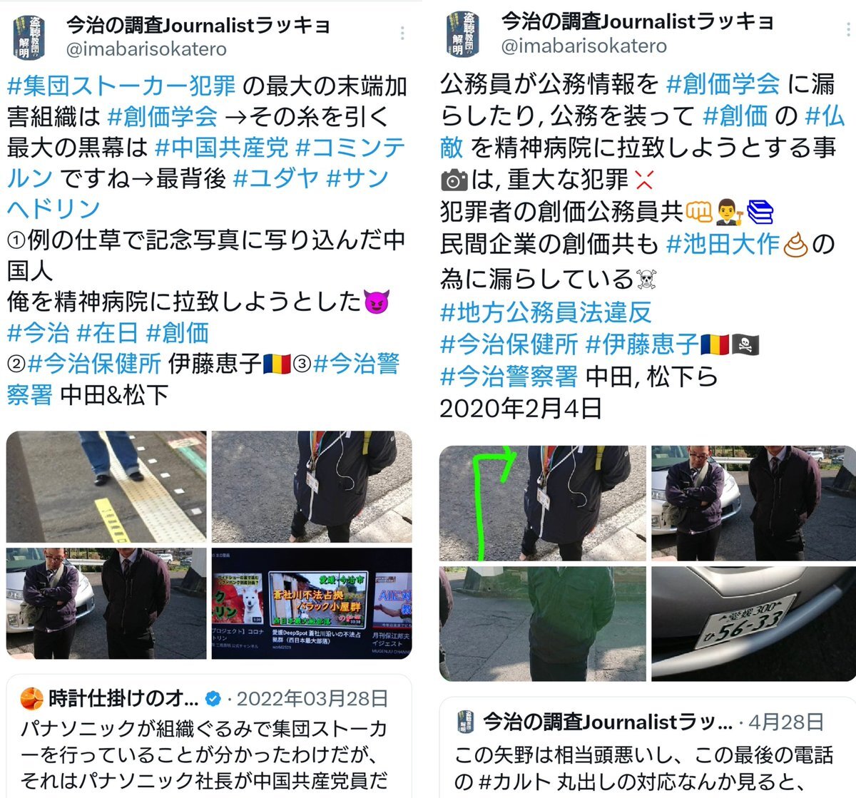 こうした #公務員 のスパイたちは、2009年に自殺した清水由貴子さんにも付き纏っていた。彼女は、創価にやられたと思い込まされていたが、創価の私的制裁なら、防犯パトロールは登場しない。犯人は、諜報機関(#防衛省 情報本部、#警察庁 警備局)でした。 いつ責任とるの? #自衛隊 #警察 #犯罪 x.com/NebQvNSFzh7918…