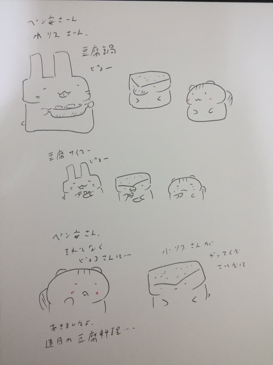 #豆腐の日 うに枝ペン安の仲間、ピョコ次郎の大好物は豆腐!🐰 ピョコさんの豆腐料理は美味しいのですが、毎日となれば…… #藤枝梅安 pic.x.com/1BwVRhFtQQ
