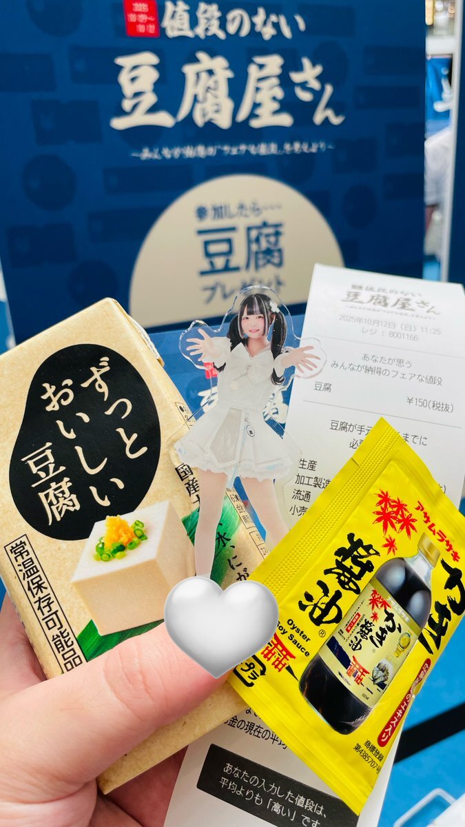 10月12日は豆腐の日⬜️ 東京駅で近くで開催している『値段のない豆腐屋さん』参加してきた! 豆腐(大豆)の生産から消費者に渡るまでのコストを考えて、各々が豆腐に値付けするイベント💰流通項目以外、ニアピンでした🎯✨最後にはお豆腐と醤油も貰えて楽しかった😊 #豆腐の日 #つむーと pic.x.com/KpdlvAR1Cy