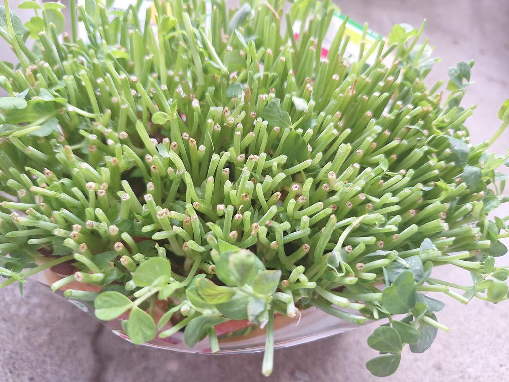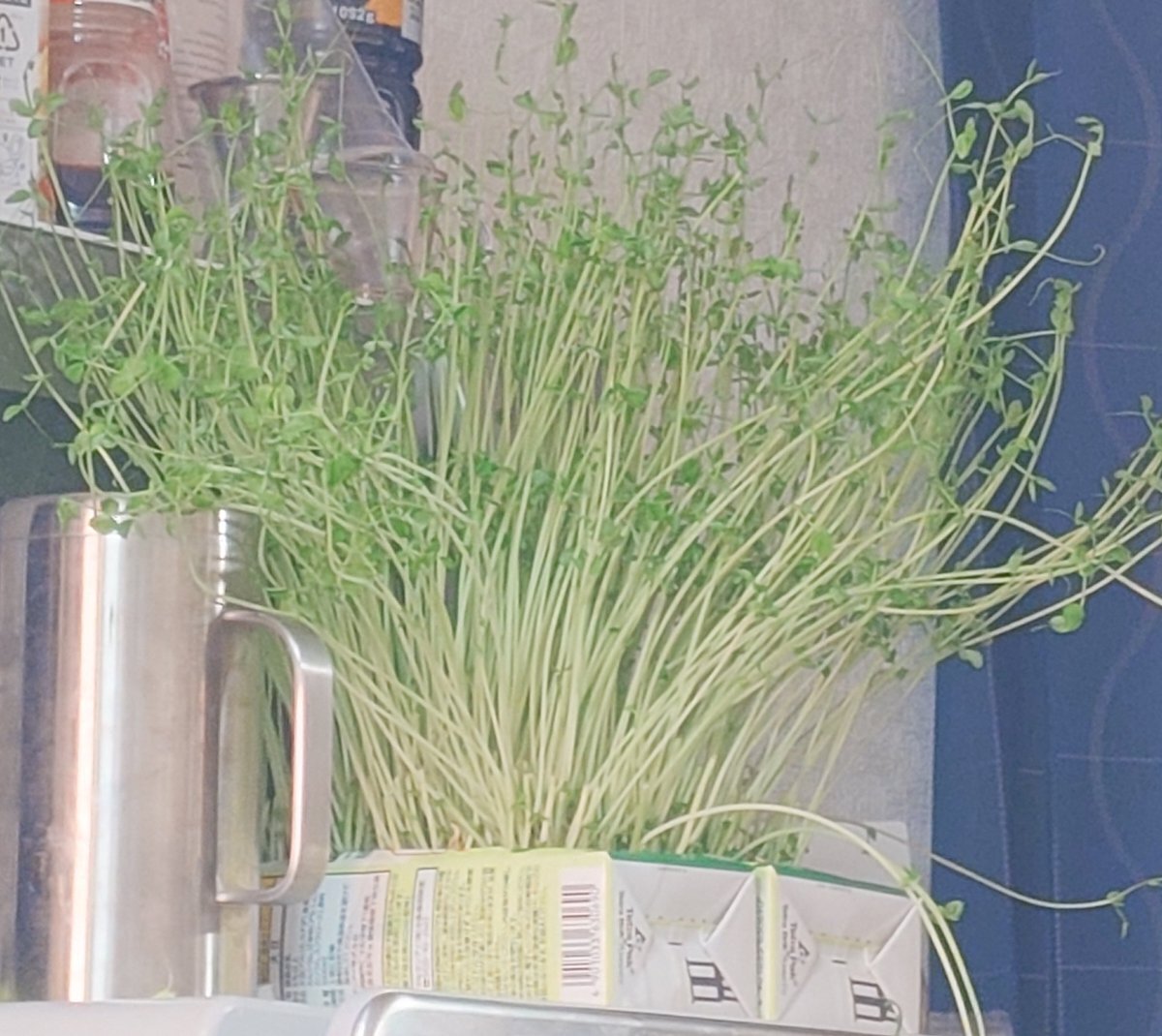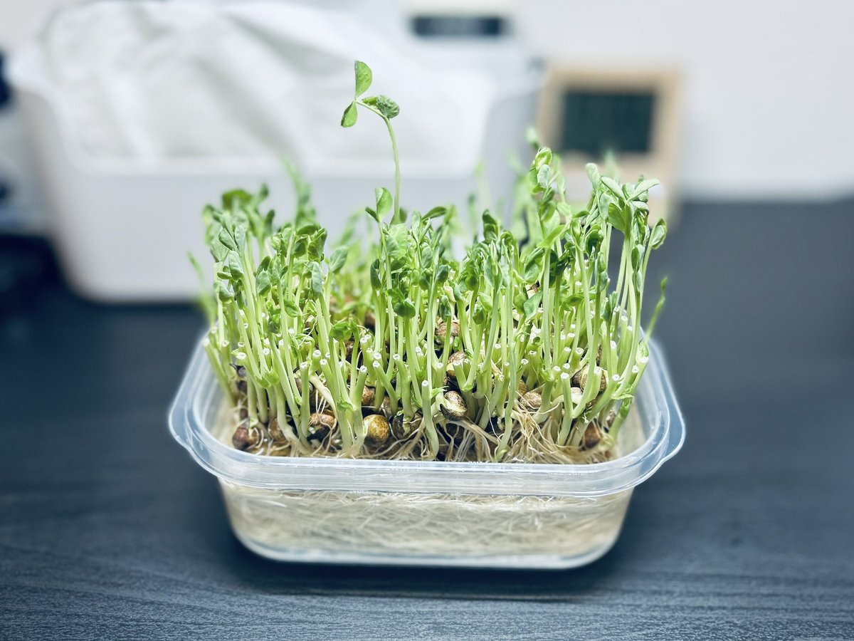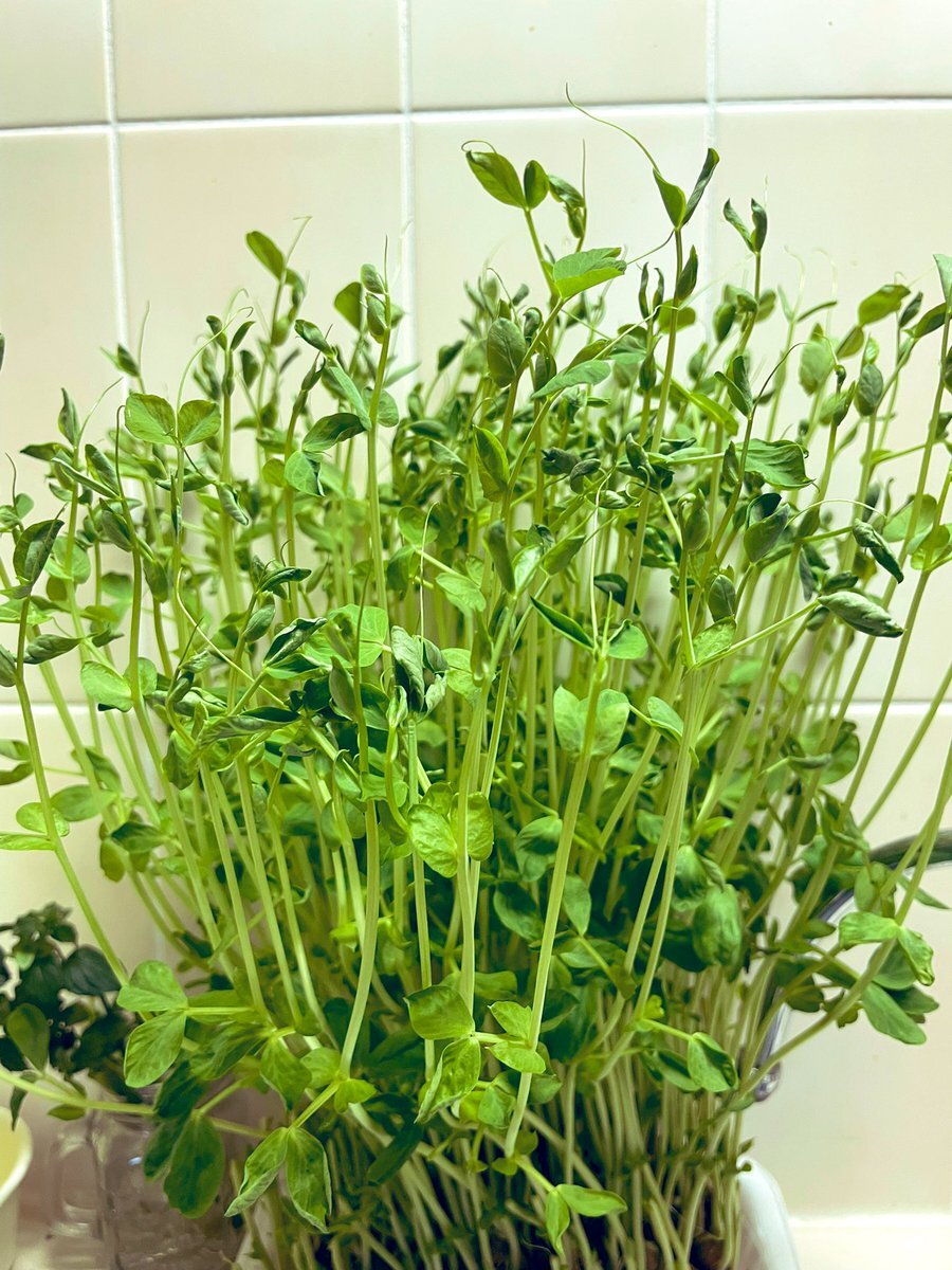 先日、会社で豆苗の話で盛り上がってそのまま帰りに買って食べてみた サラダにして食べたけどシャキシャキして美味しかった🥗 そのまま次回食べるために栽培する予定だけど、切った位置が悪いのか1本だけ成長してる ちなみに写真は、食べてから(切ってから)4日目の豆苗 #豆苗 pic.x.com/f8VmZiWVSH