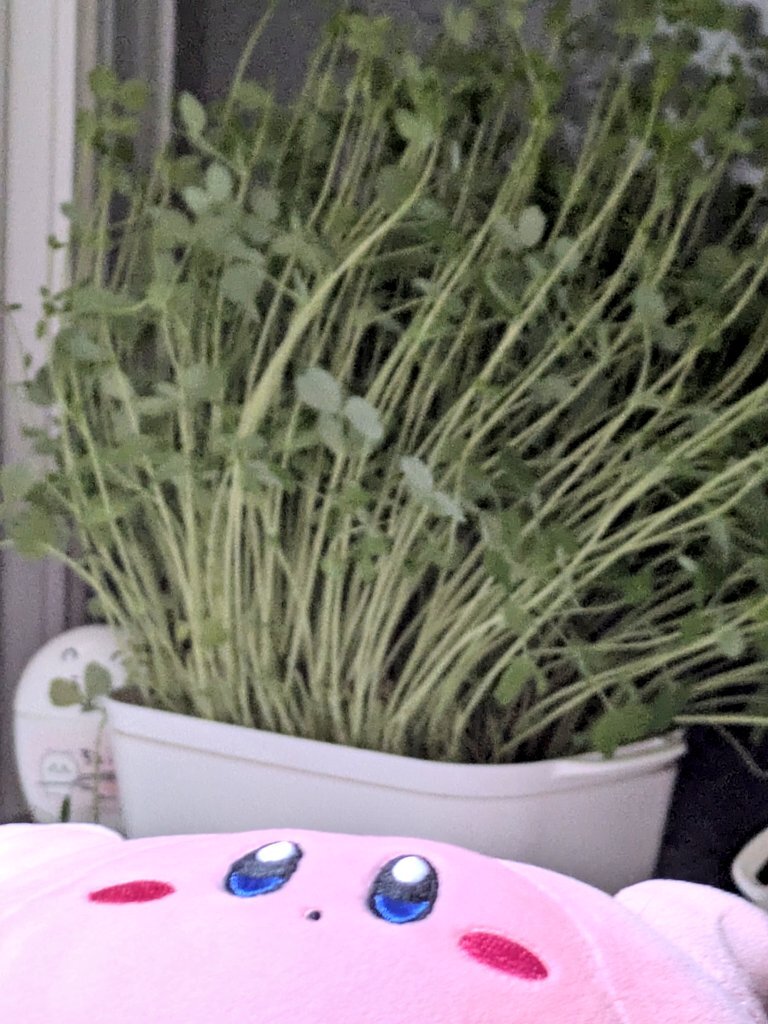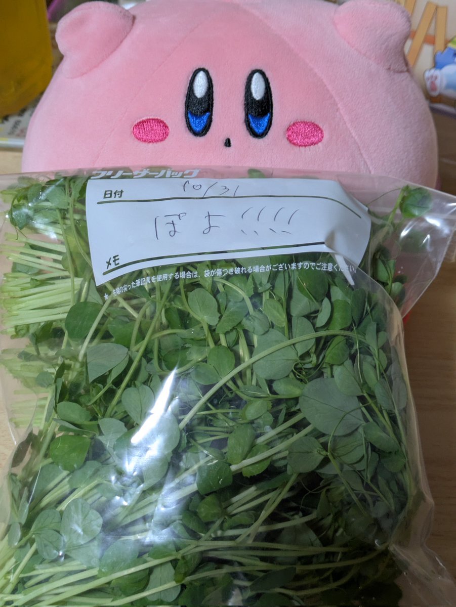 ぽよ!!!!(豆苗23、大豊作……!!🎃🥬 生産者:まんぷくカービィちゃん_(っ'o'c)_🩷) 豆苗24も絶賛育成中……!!🌾 #豆苗 #まんぷくカービィ #ぬい撮り pic.x.com/7BNM4WXgmB x.com/ruppi1122hanha…