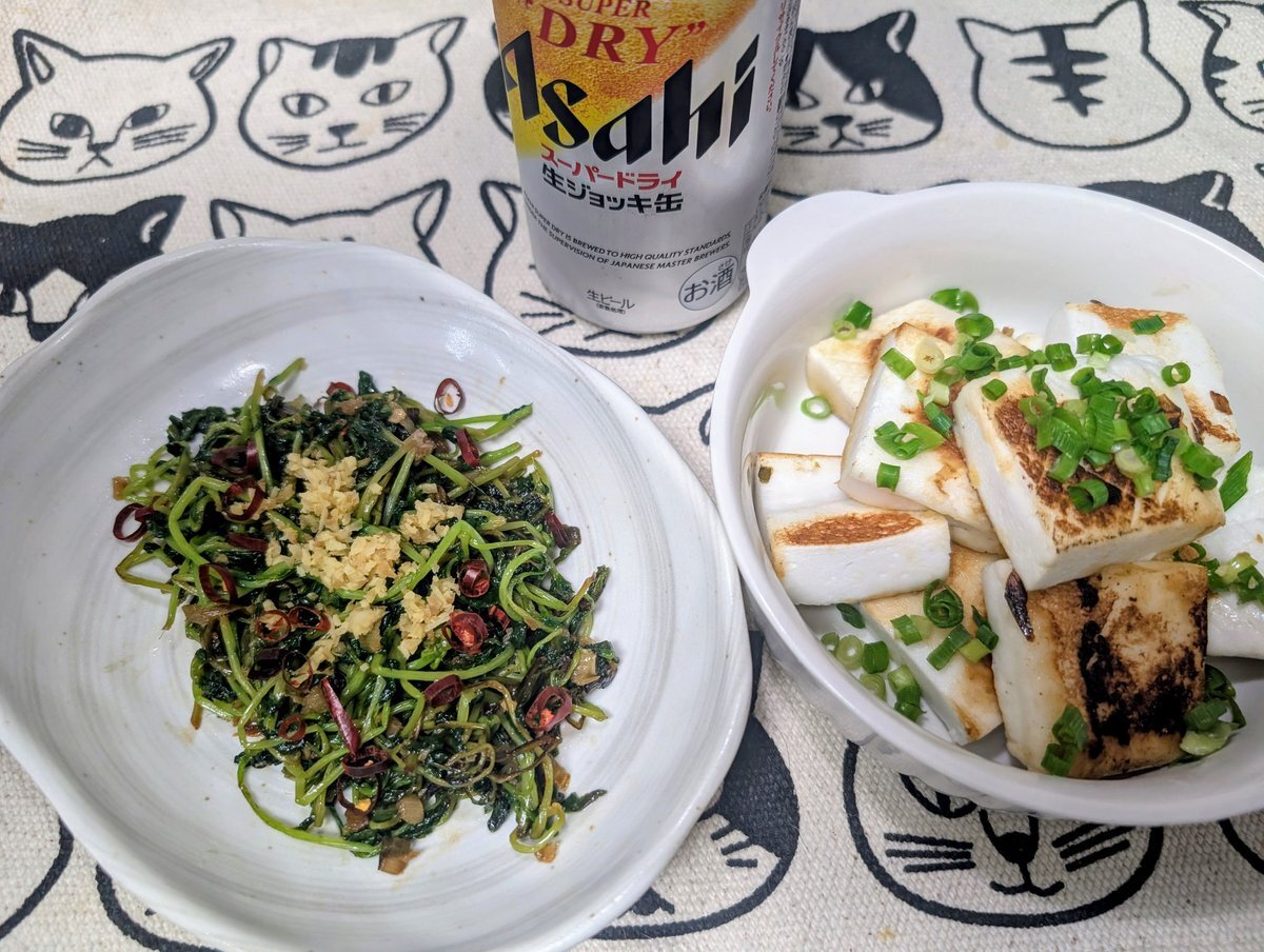 晩酌は豆苗と生姜のピリ辛炒めとハンペンのバター炒めで乾杯します🍺 今日も1日お疲れ様でした⭐️ 夜はデスノートするぞ #晩酌 #豆苗 #お腹ペコリン部 #ジョりーんの飯テロ #おうちごはん #ジョりーんの晩酌 #乾杯 pic.x.com/UNzNK1Wh0P