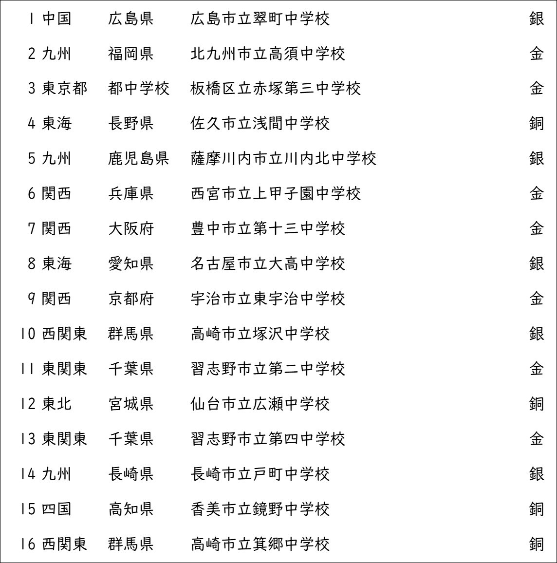 第38回全日本マーチングコンテスト中学生後半の部結果 (こちらでも見られますajba.or.jp/i/)