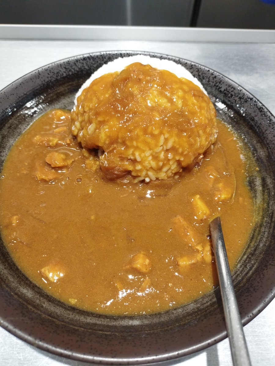 「カレーライスに醤油」派ではないが、たまにしてみたくなる当方にとっては、#わ蔵 の #カレーライス には、卓上にある「#豚骨らーめん」(替え玉で味が薄まった時に味変でつかう)スープの素を少々かける。というやり方が思いの外マッチしてた。と思う。 pic.x.com/mhG88sMjk3