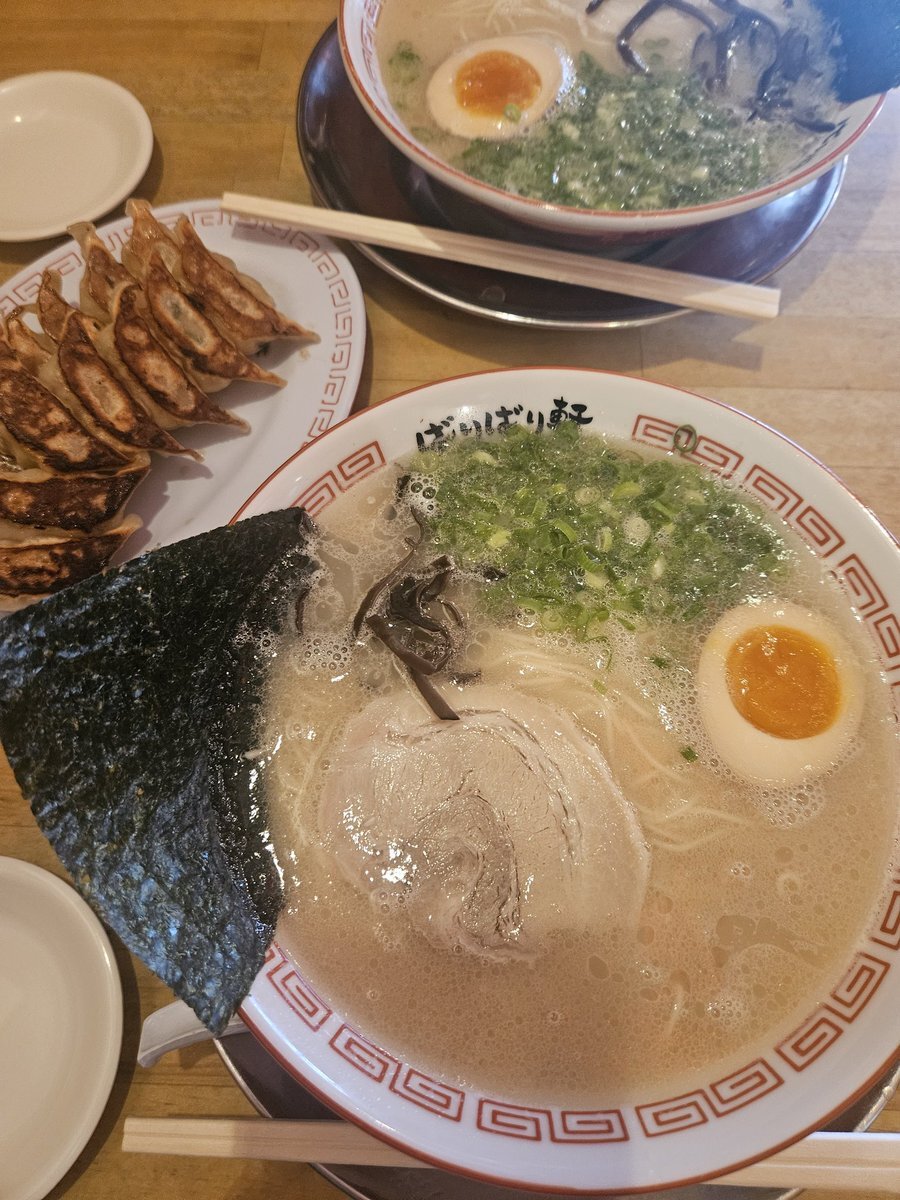 ラーメン海鳴博多デイトス店 思わず「美味い!」とうなる一杯を! 「魚介を堪能できる」新しいとんこつを! 『ご飯ギョーザセット』 ラーメンに、香ばしく焼き上げたギョーザとご飯を組み合わせた定番セット🍜🍚 ボリューム満点で大満足の一品です! #ラーメン海鳴 #豚骨らーめん #博多ラーメン pic.x.com/4C3oCfIxuY