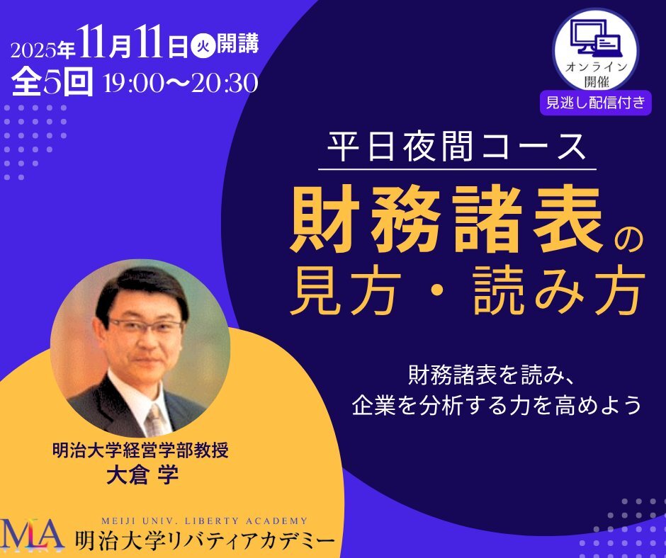 財務諸表を読み、企業を分析する力を高めよう! 25年秋期🍂 🚩財務諸表の見方・読み方(平日夜間コース) 【💻オンライン・見逃し配信付き】 ■2025年11月11日(火)開講 ■全5回 ■19:00~20:30 ✅詳細・お申し込みはこちら👇 academy.meiji.jp/course/detail/… #明治大学 #生涯学習 #財務諸表 #企業分析 pic.x.com/2a35J8lEfc