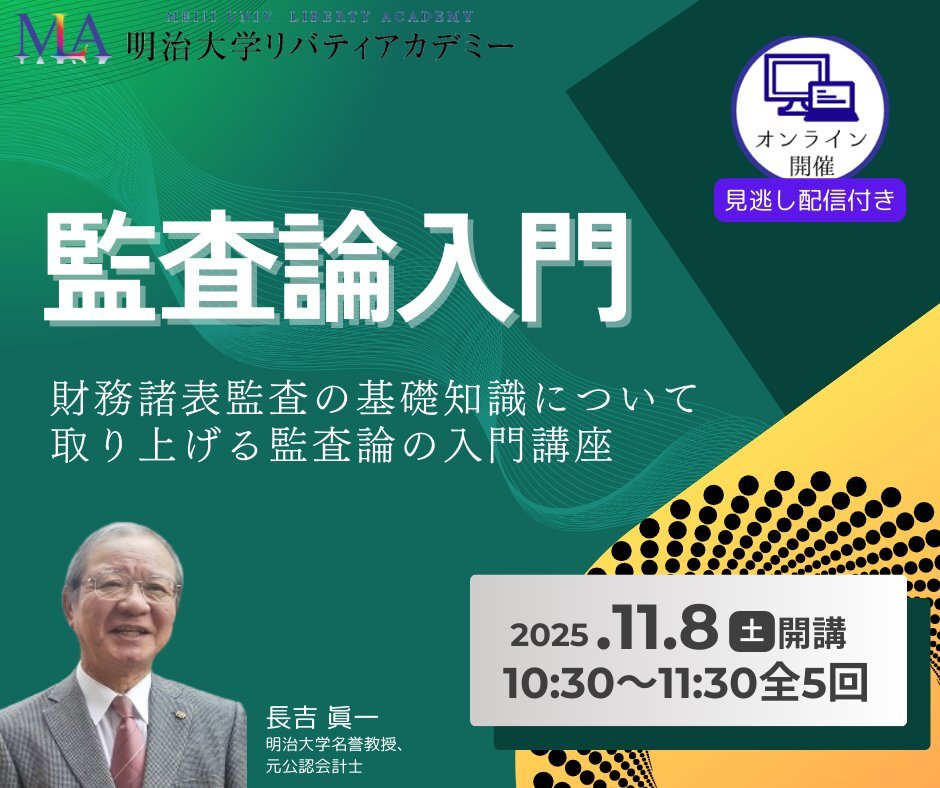 📢申込締切間近❗️ 🚩監査論入門【💻オンライン・見逃し配信付き】 ■2025年11月8日(土)開講 ■全5回 ■10:30~11:30 ✅詳細・お申し込みは👇 academy.meiji.jp/course/detail/… #明治大学 #生涯学習 #財務諸表 #監査論 #企業分析 pic.x.com/rJkb0kuL5B