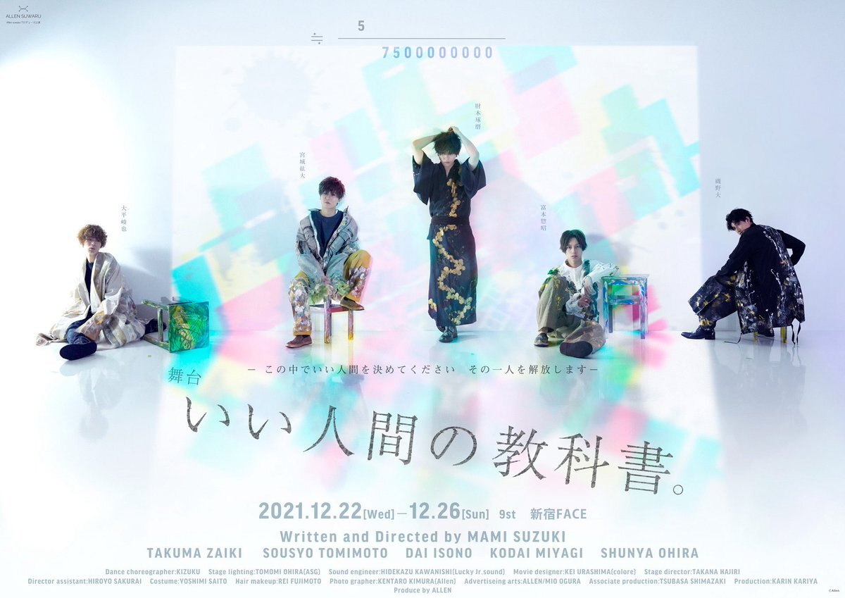 舞台『いい人間の教科書。』(2021年) 構成・演出:鈴木茉美 . 配信購入サイト:store.bitfan.id/allen-suwaru/i… . 【CAST】 #財木琢磨#富本惣昭#磯野大#宮城紘大#大平峻也 #イイショ #劇団アレン座 ================================== 2026年1月公演 舞台『TOU -REBUILD-』 pic.x.com/OIDPquK6nU
