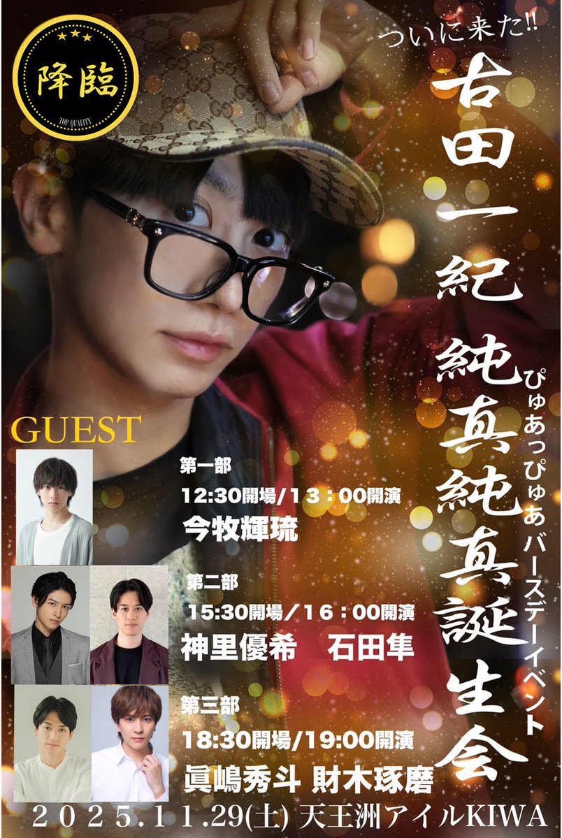 / 📣#財木琢磨   古田一紀さん11/29開催 BDイベント ゲスト出演急遽決定🎉 \ 「ついに来た!!古田一紀 純真純真誕生会(ぴゅあっぴゅあバースデーイベント)」 に急遽ゲスト出演が決定! 特別な日を一緒にお祝いさせてください🎂🎉 🎟️詳細 zaiki-takuma.com/information/ne… 会場でお待ちしています🎾👓 pic.x.com/45HJo0WMkU