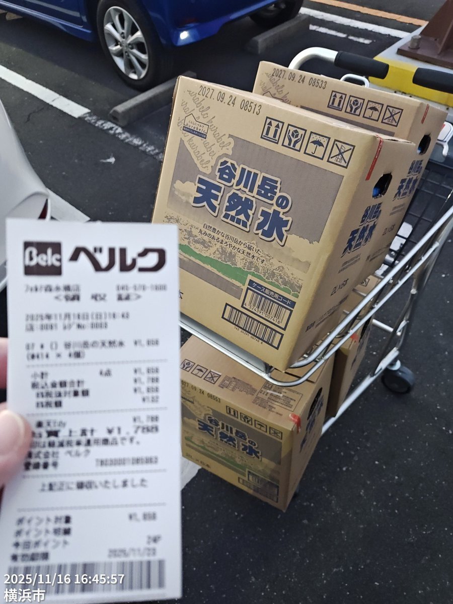 昨日は箱売りなく2本だけ。今日違う店舗来たら5箱あったから4箱買い。その姿を見てたどう見ても同じ類の方が最後の1箱にサントリー天然水を4箱とってた。 この谷川岳の天然水はコスパ良いです。在庫があるときに備蓄買い。 #災害対策 #災害備蓄 #備蓄 #水備蓄 #水確保 #資産 #資産価値 pic.x.com/WcVrsTTLQL