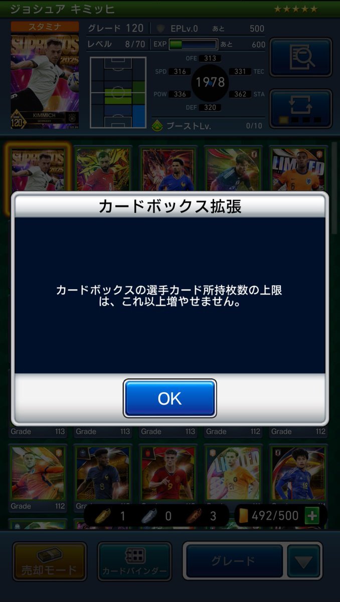 資金も無いし、 カードボックスの空きも無いから、 グロカとガチャ券が貯まっていく… (T ^ T) カード化しても資金不足でフュージョン&育成できない… うんえーさん、頼んます🙇 #ウイコレ #カードボックス #資金不足 pic.x.com/cvg7Bav5X8