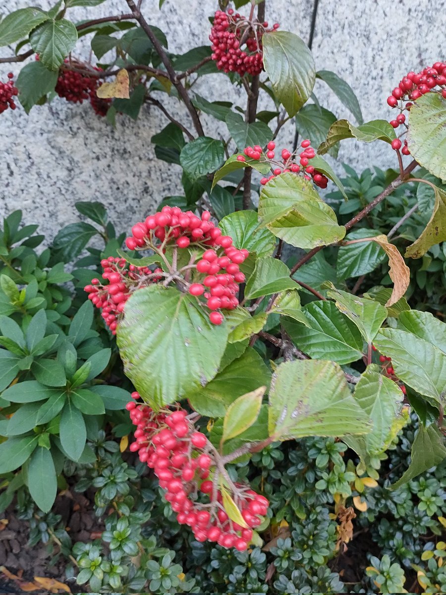 あたらしくできたマンションの植栽で、ガマズミとおぼしき実がきれいに色づいています。 山で自生しているものは、最後まで食べ頃にならず、他の実がなくなったあとで野生動物に食べてタネを広げてもらう生存戦略だと聞いたことがあります。(田) #赤い実 pic.x.com/k1CvwQCmJQ
