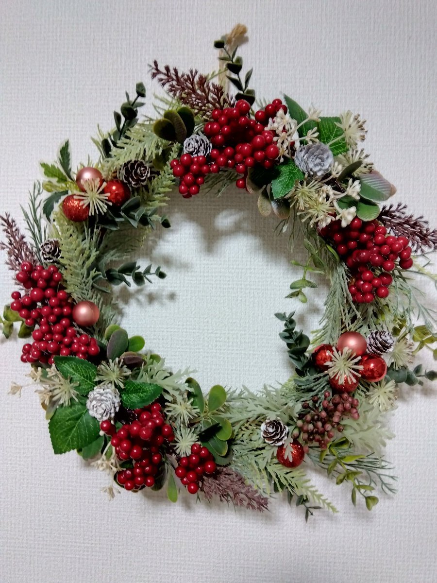 おはようございます🤗 昨日の白い花とは真逆の真っ赤な実のクリスマスリースです✨ 12月になったら玄関のドアに掛けましょう😌🎵 クリスマス🎄がどんどん近づいて来る⤴️ #リース #クリスマス #赤い実 pic.x.com/7Sr6vZNCTu