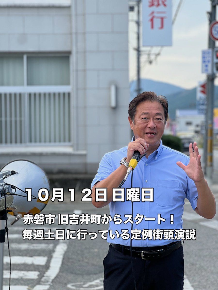 10月4日(土)今週の定例街頭演説は旧山陽町を中心に、9月議会最終日に設置された百条委員会について「前の市長との確執が発端の議会権力の暴走だ」とお話しています。我々ベテラン議員たちの出した答えは「私的な権力の行使には賛同できない」でした。 #赤磐市 #赤磐市議会 #選挙の前だけ活動しない pic.x.com/dJ3nUoLo7S
