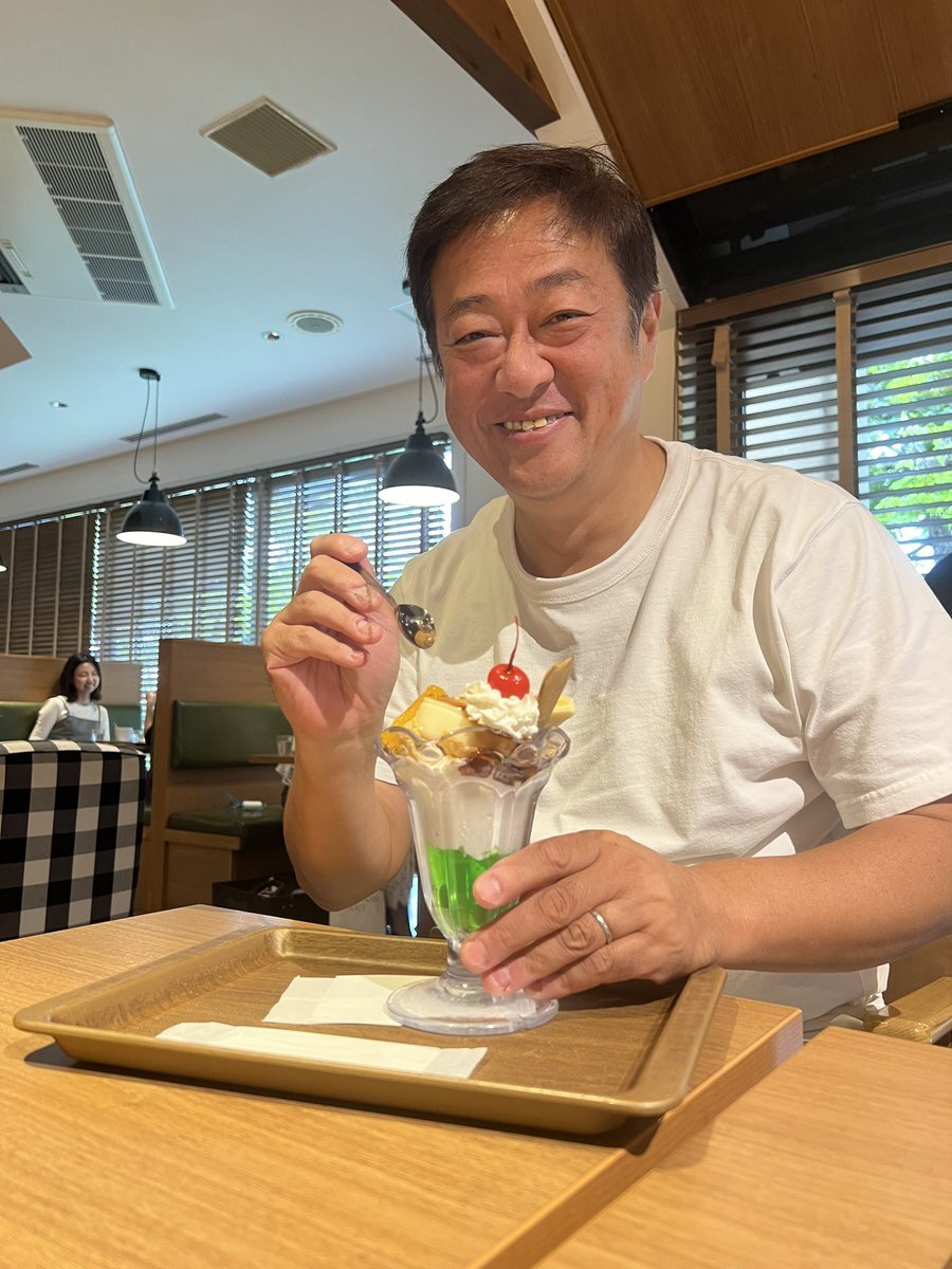 家族でお出かけの帰りすがら、パフェが食べたいという娘のオーダーで、サンマルクさんに寄りました。佐々木はプリンアラモードのパフェを頂きました。#赤磐市 #赤磐市議会 #佐々木ゆうじ pic.x.com/UoI35Lk2q4