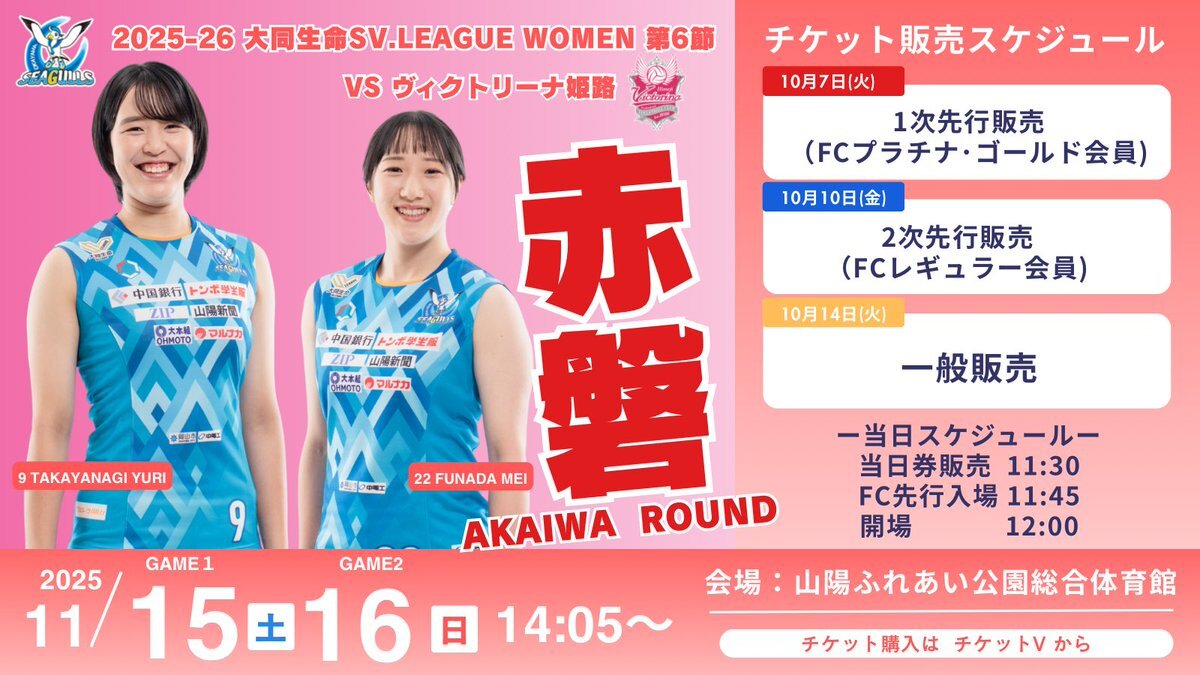【第6節チケットFC先行販売中🎫】 2025-26 大同生命SV.LEAGUE WOMEN 第6節 の会場は練習拠点の #赤磐市🍑 #山陽ふれあい公園総合体育館 です🏐 ファンクラブ先行販売開始しております! チケットのお買い求めは #チケットV で🎫 GAME1 ticket-v.jp/ticket/?id=328… GAME2 ticket-v.jp/ticket/?id=328… pic.x.com/4mXRO7IN2V