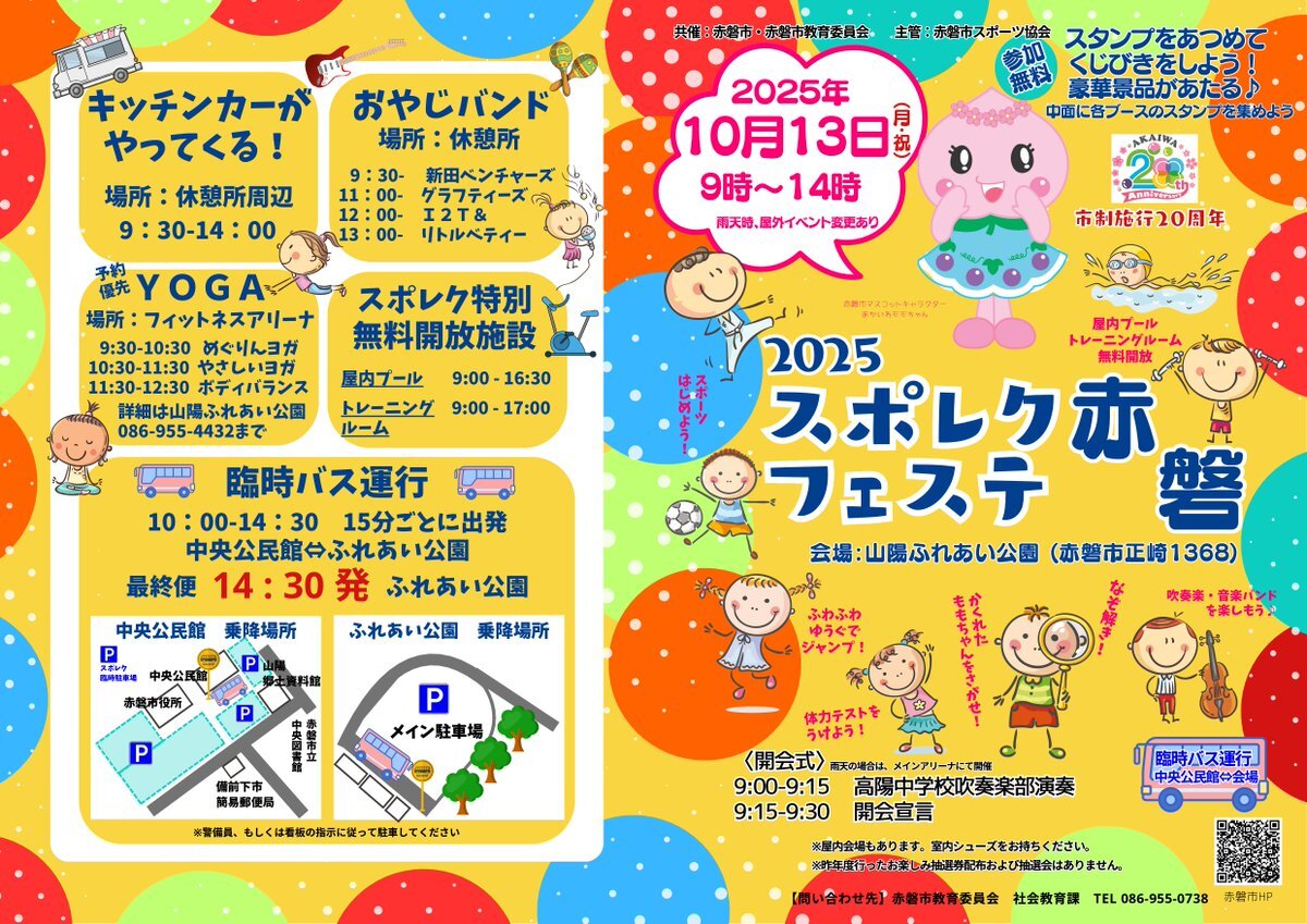 \お知らせ/ 10/13(月・祝)に山陽ふれあい公園で「スポレクフェステ赤磐」を開催します。 スポーツやレクリエーションを通じて、生涯スポーツの楽しさを体験しませんか。一人一人が気軽に参加できる生涯スポーツへのきっかけづくりとなるイベントです!city.akaiwa.lg.jp/annai/kyouikui… #赤磐市 #生涯スポーツ pic.x.com/NSucDKXp2L