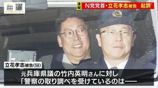 <速報>立花孝志容疑者を起訴 死亡した元兵庫県議への名誉毀損罪 神戸地検 mainichi.jp/articles/20251… 立花被告はSNSや選挙の演説で昨年12月~今年1月、元兵庫県議の竹内英明さん(当時50歳)が県警の任意聴取を受けて逮捕される予定だったなどと発信し、竹内さんの名誉を傷つけたとされています。