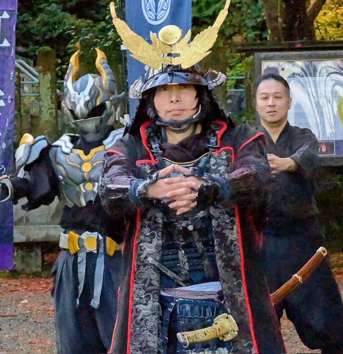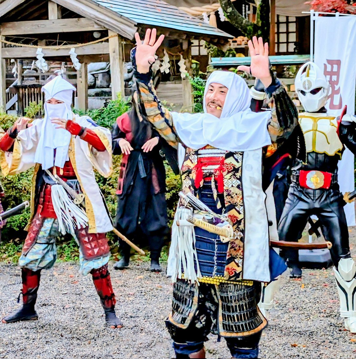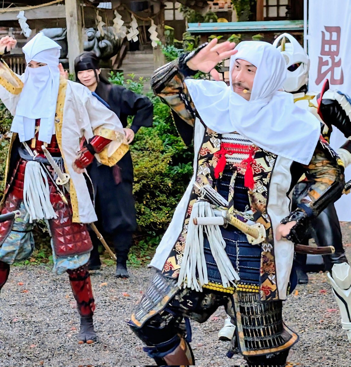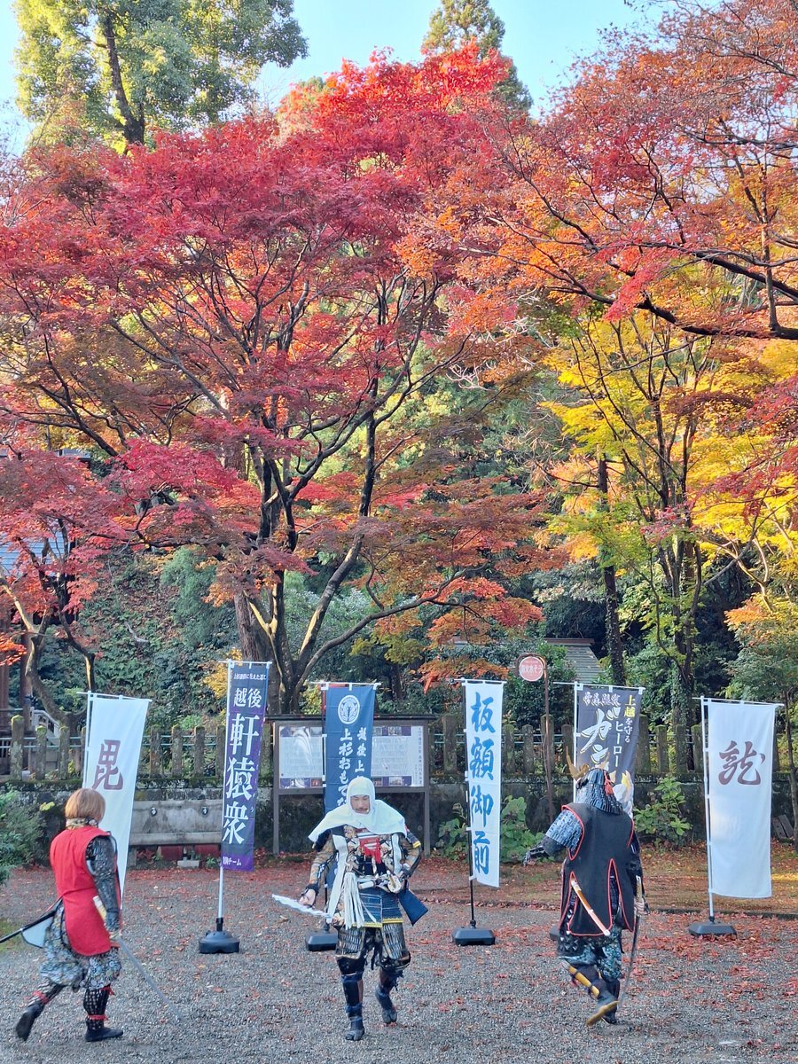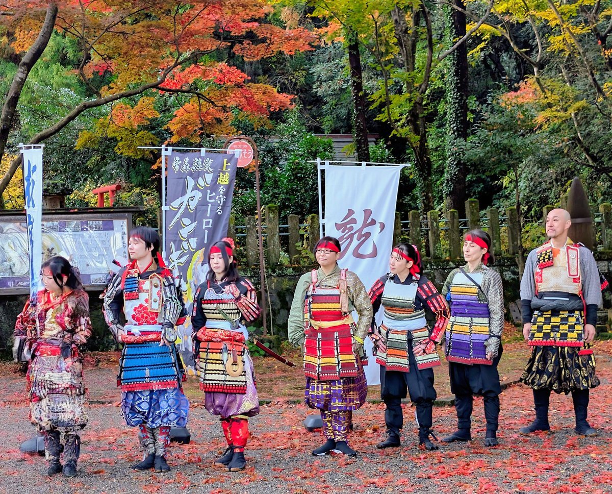 2025.11.22 #春日山城秋の陣 春日山神社にて年内最後のパフォーマンス披露。 #越後上越上杉おもてなし武将隊、#越後軒猿衆 #雷轟纒装ガンギ #板額会 #大谷吉継 #ギョーブ pic.x.com/lHvUcynR5h