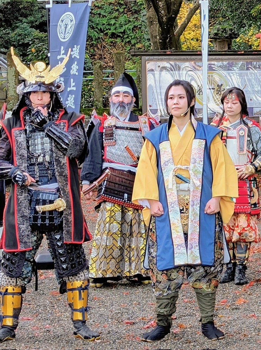 2025.11.22 #春日山城秋の陣 #春日山神社 にて開催。 写真は、新潟・胎内からの #板額会、地元 #越後軒猿衆、#越後上越上杉おもてなし武将隊 上杉景勝様と新メンバーの河田長親様。 #上越市中屋敷 #新潟県 #Joetsu pic.x.com/qWRuAoh82J