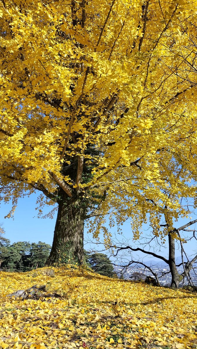 春日山城の二の丸大銀杏。 今が盛りと色艶やかな金色の姿でお出迎えしてくれるぞ。 明日から師走になり雪予報も聞こえてきておる故に見に行くならば今じゃよ。 #越後上越上杉おもてなし武将隊 #春日山城 #上杉謙信 #上越市 pic.x.com/xzI9a08KPC