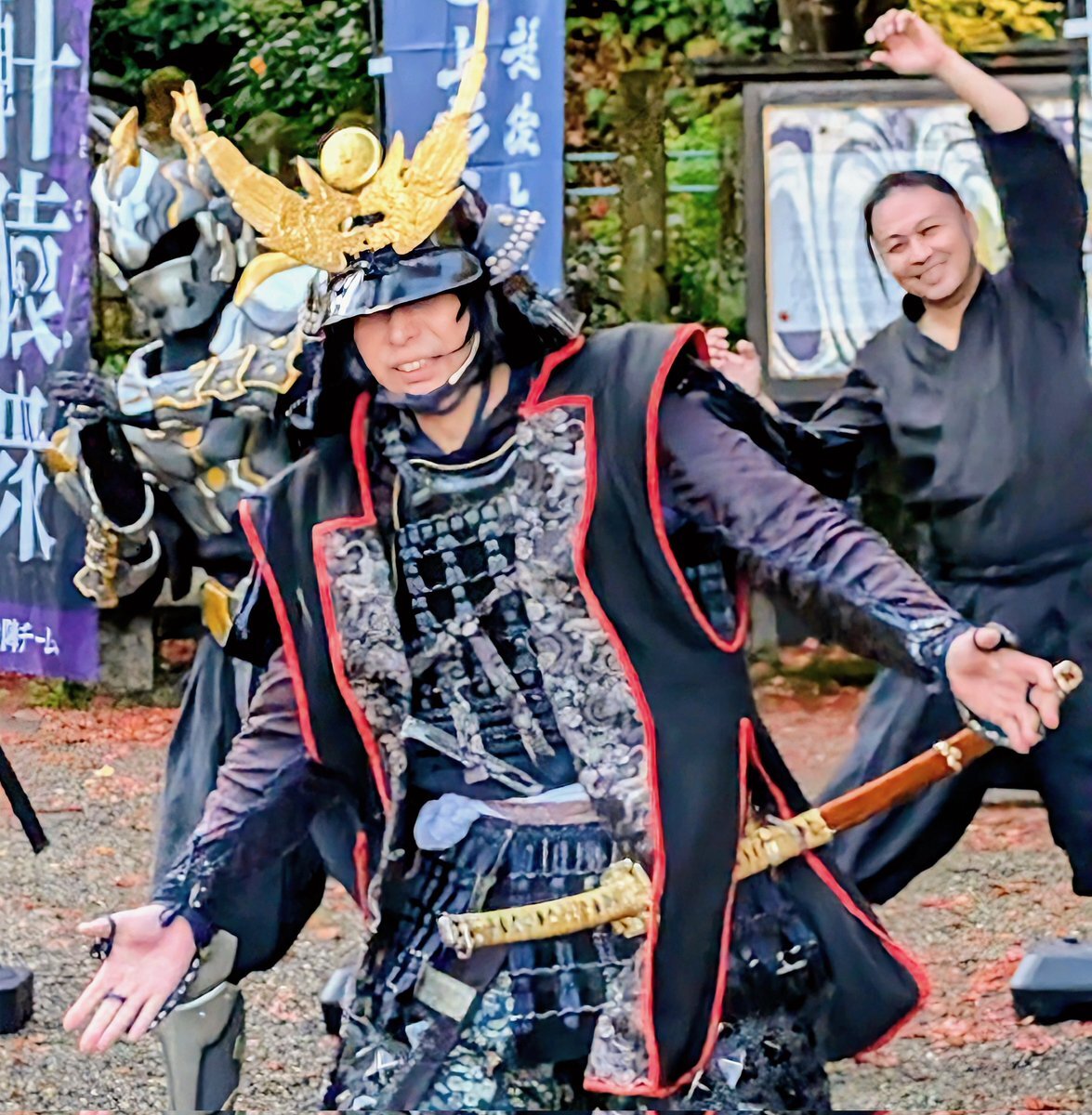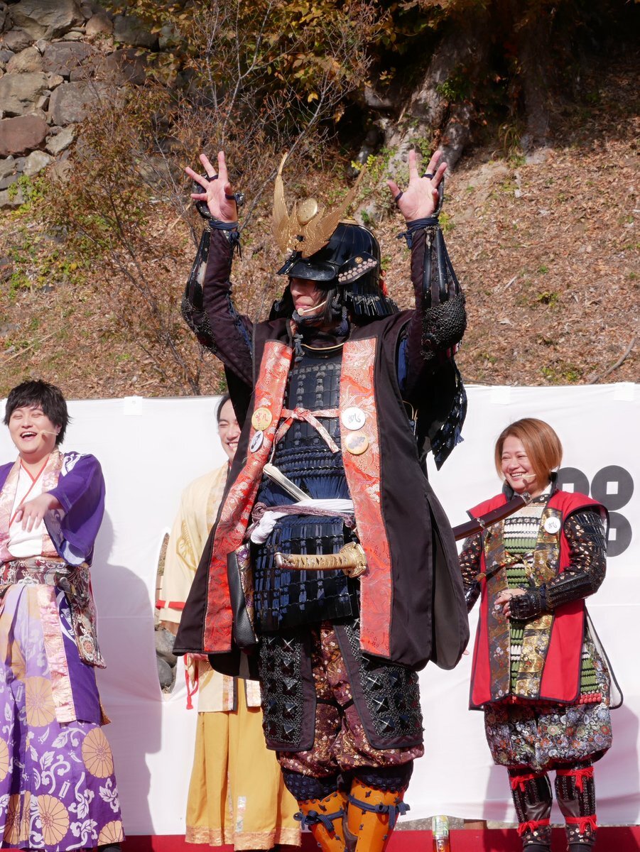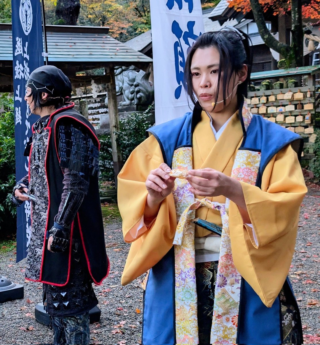2025.11.22 #春日山城秋の陣 #越後上越上杉おもてなし武将隊、#越後軒猿衆 等がパフォーマンス披露。武将隊の新メンバーとして #河田長親様 お披露目。 pic.x.com/ghYQH3Bx3y