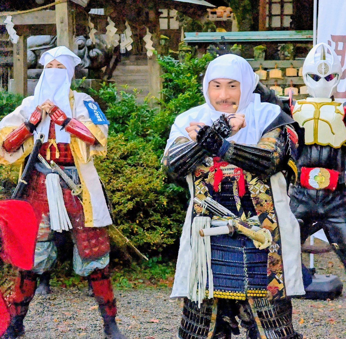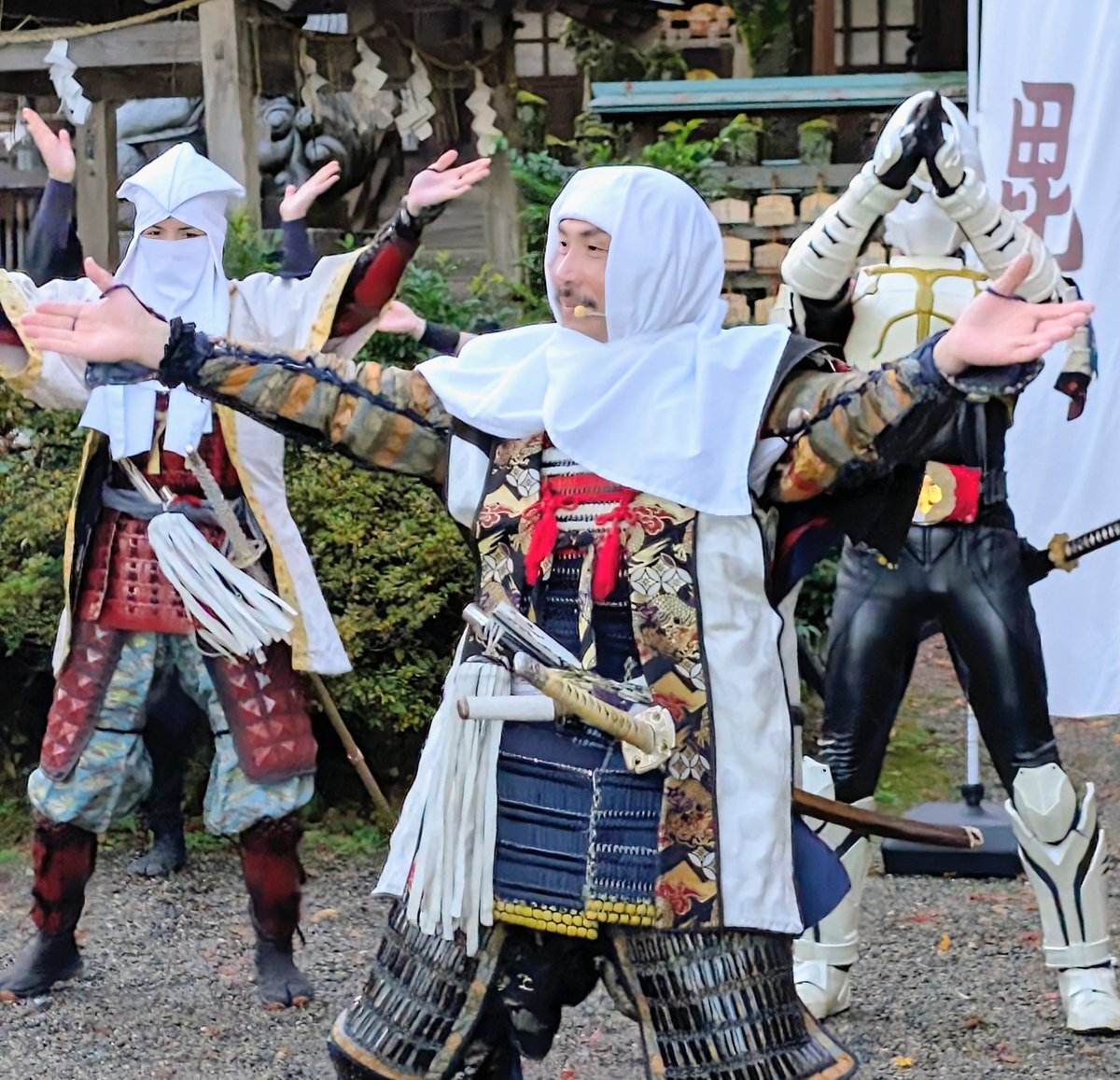 2025.11.22 #春日山城秋の陣 春日山神社にて年内最後のパフォーマンスを披露。 #越後上越上杉おもてなし武将隊 #越後軒猿衆 #板額会 #雷轟纒装ガンギ #大谷吉継 #ギョーブ #上越市中屋敷 pic.x.com/SZEMCI6Kju