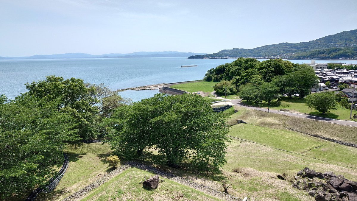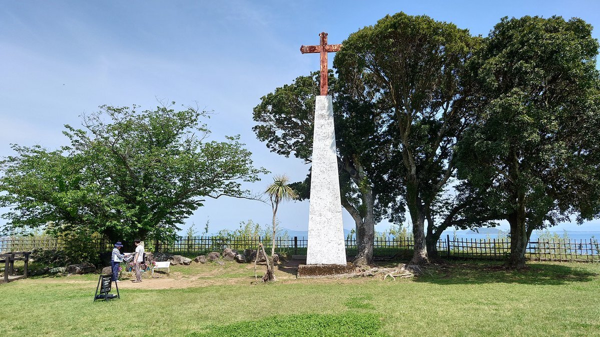#長崎県 国史跡 原城跡 石垣から少しせり出した櫓台跡からの眺めは素晴らしい 天草四郎像に、その像が見つめる先には十字架が設置されている 言われないと見逃しそうな海に面した場所に 3体の小さなキリシタン像が海の向こうを見つめている #車泊旅行記 #車中泊 #旅行 #観光 pic.x.com/UDBo9eMuXx