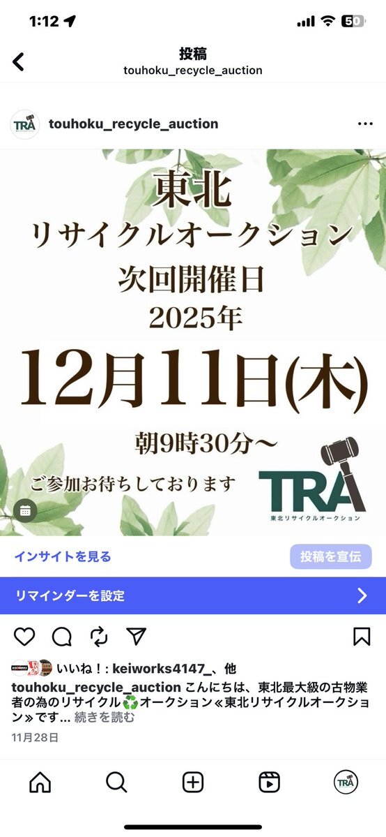 次回は12月11日が東北リサイクルオークション開催日です。 12月になり本格的な寒さになりました。暖かい上着を持って、東北リサイクルオークションにお出かけください🙇 新規ご入会大歓迎‼️ 売主大募集‼️ #東北リサイクルオークション #古物 #仙台 #お宝 #リサイクルショップ #転売 #ネット pic.x.com/0dsteU1hCP