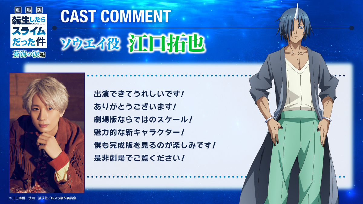 劇場版 #転生したらスライムだった件 蒼海の涙編 キャストコメントが到着✨ ━━━━━━━━━━━━━━━━━━━ ・ソウエイ役 #江口拓也 さん 🎬2026年2月27日全国公開 #転スラ #tensura #劇場版転スラ #蒼海の涙編 pic.x.com/sUqhlcpcVZ