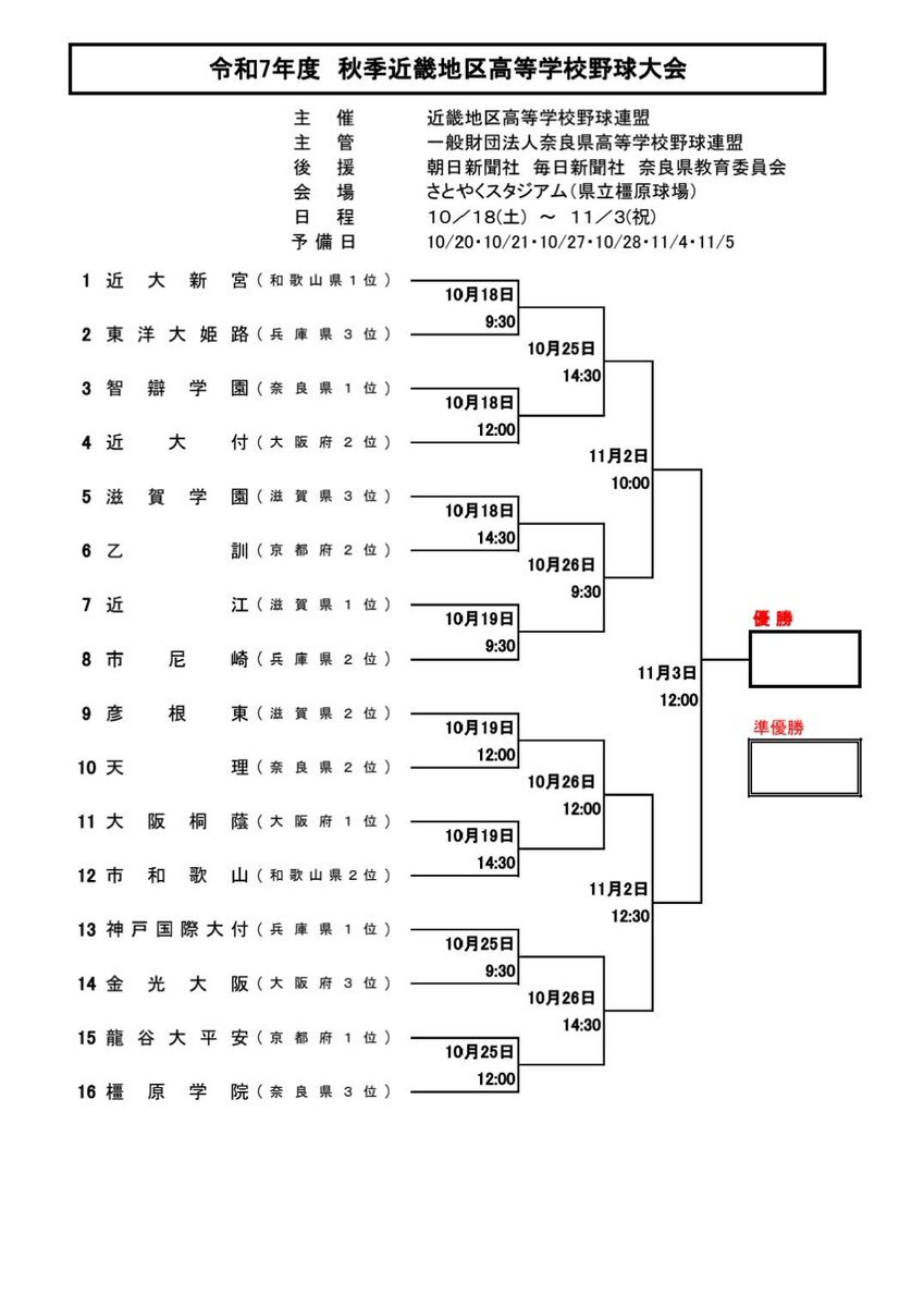 秋季近畿大会の組み合わせ決定!どのカードも面白くなりそう。 なお、大阪1位と和歌山1位は、45年連続で別ブロックになりました。これ凄い確率 #高校野球 #近畿 pic.x.com/x9NymvR3cD